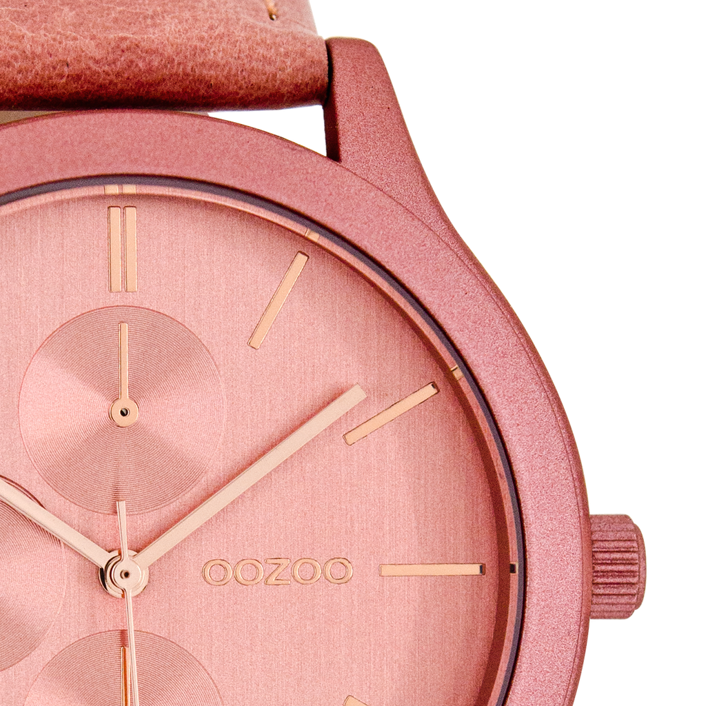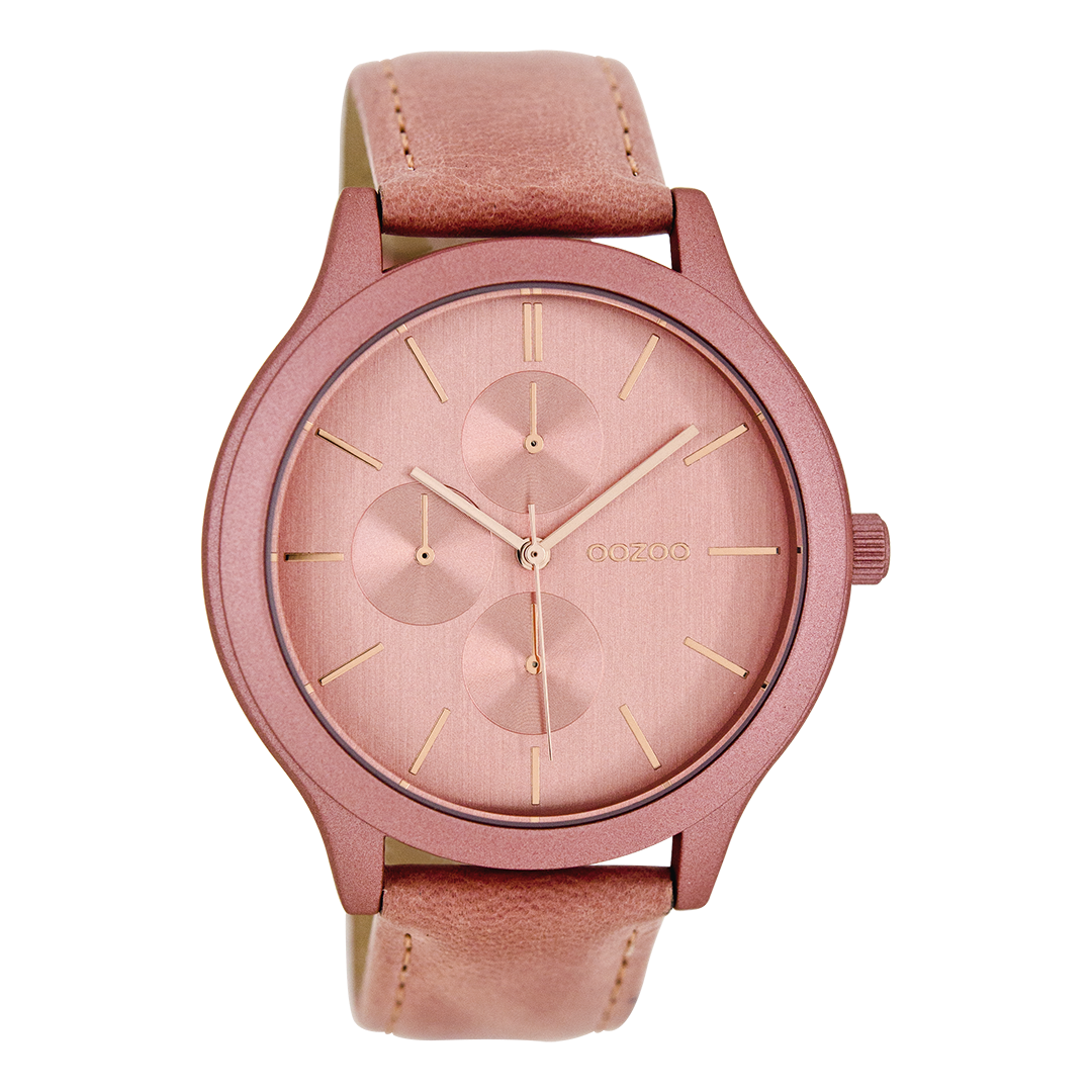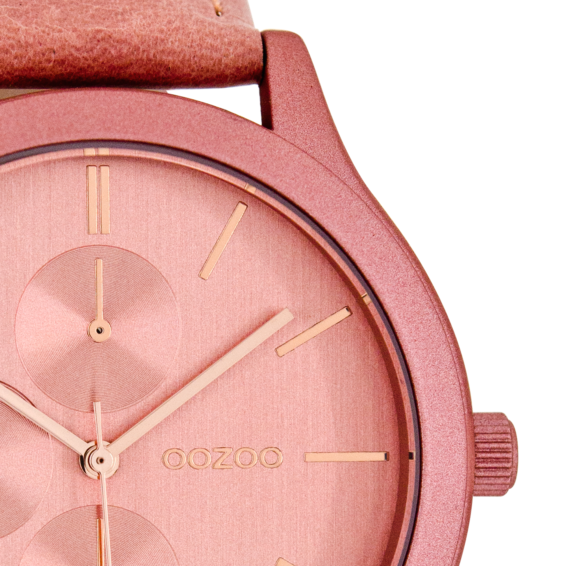 Stand out with this beautiful round ladies design from the trendy OOZOO Timepieces collection. The C8370 has a dark pink leather strap and 45 mm pink matte watch case. You are making quite the fashion statement with this dark pink chrono/sunray dial, rose gold coloured stripes digits and matching hands. This essential watch for your wardrobe has a mineral glass, stainless steel backplate and is nickel safe. This watch has a 2 Japanese movement and is covered by a 2 year warranty (see section 3 of our Refund, shipping & warranty policy).