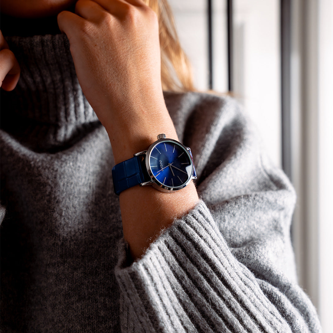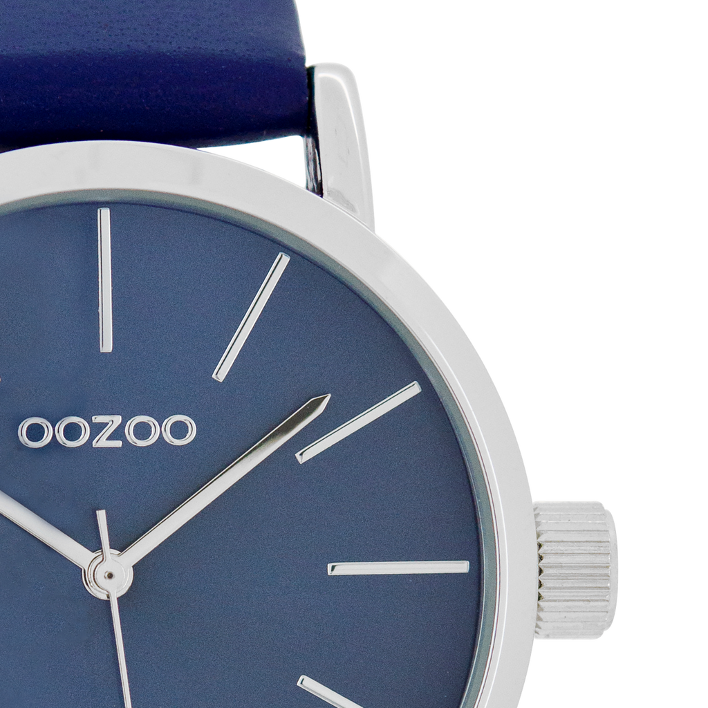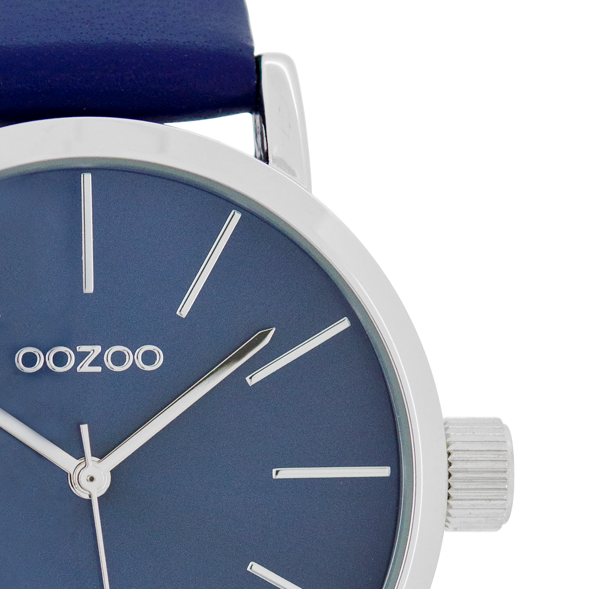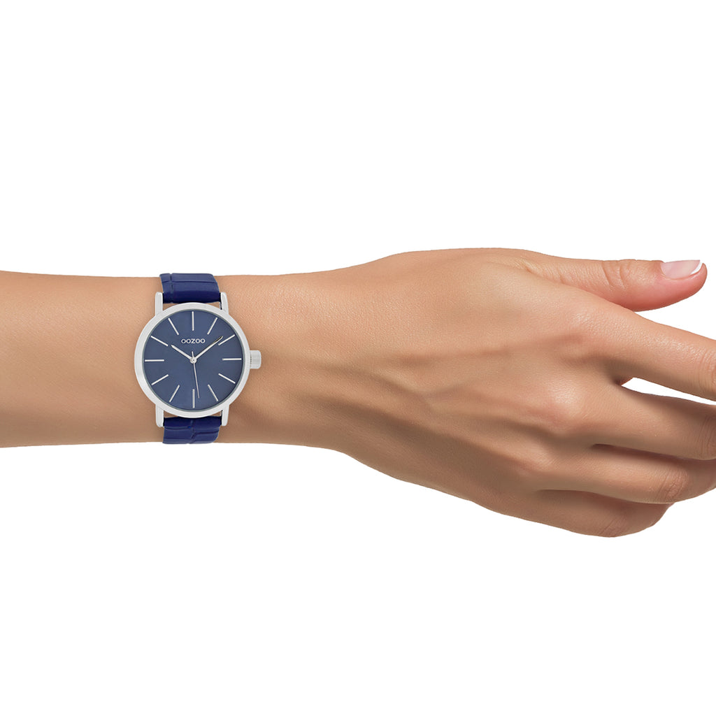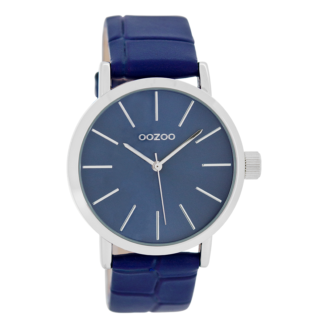 Silver coloured OOZOO watch with blue leather strap - C8422