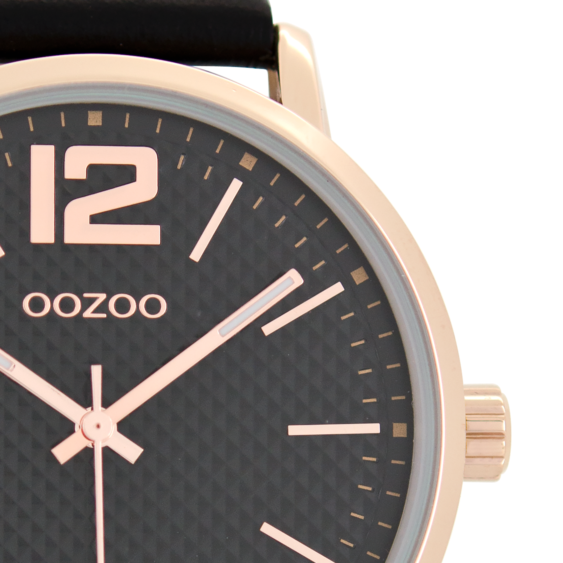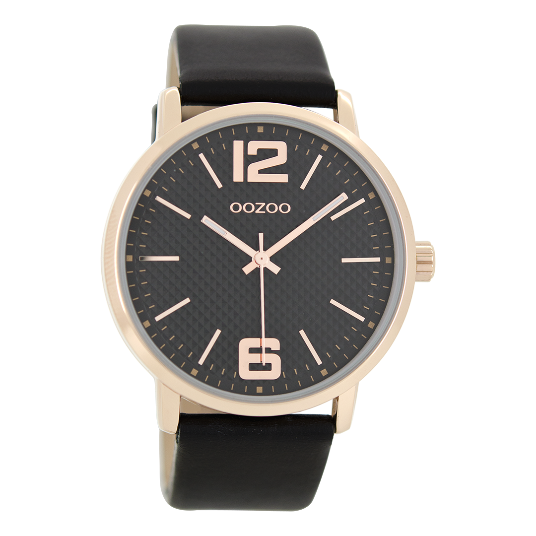 Rose gold coloured OOZOO watch with black leather strap - C8509