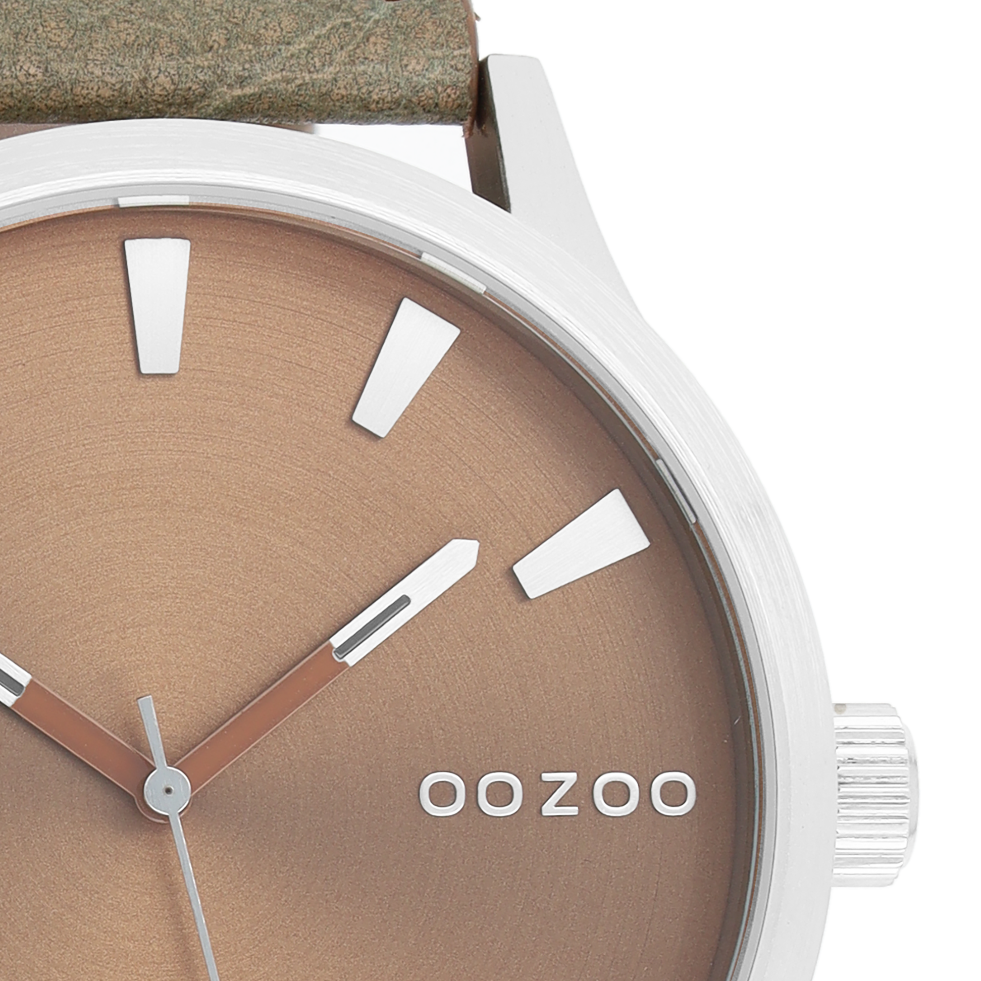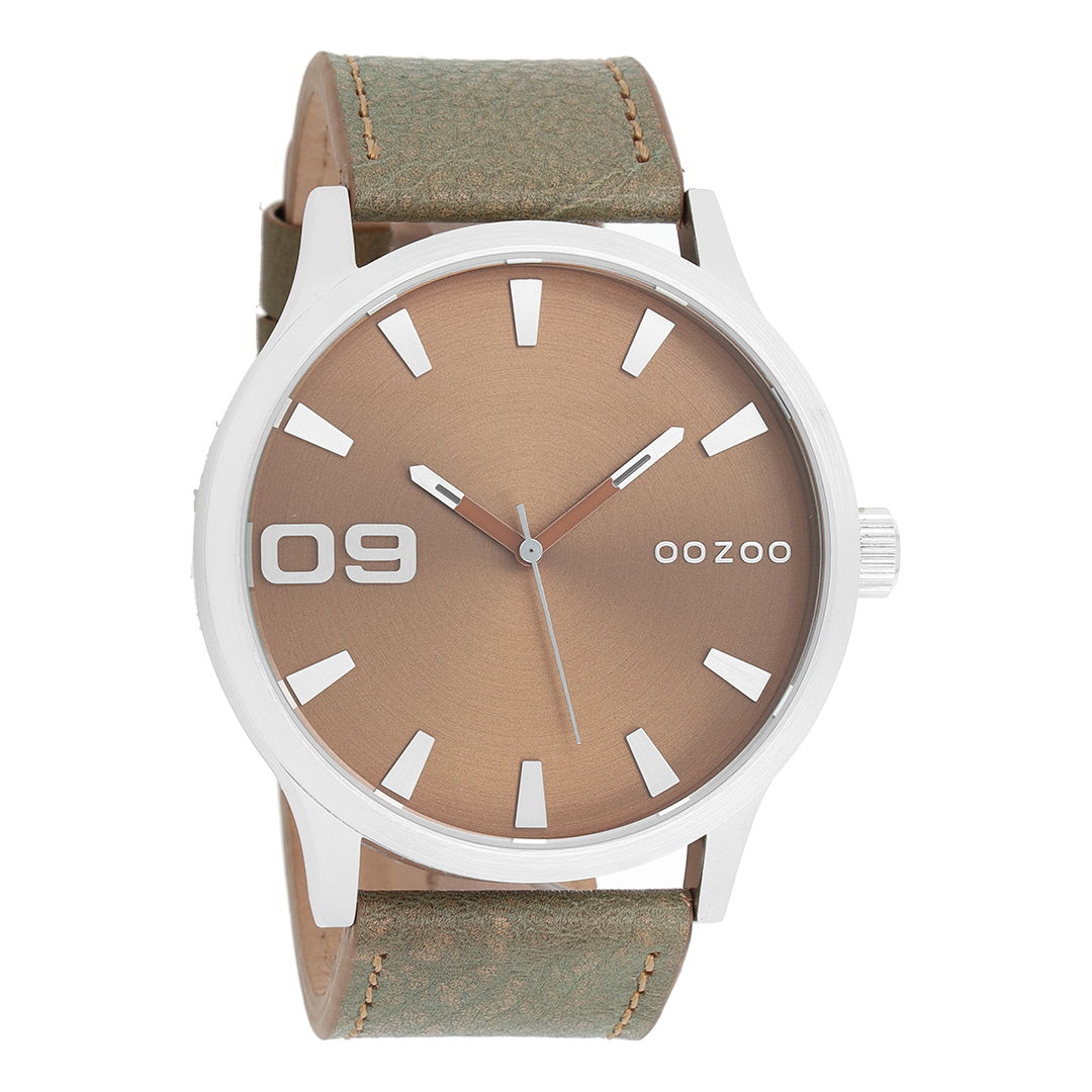 Silver coloured OOZOO watch with brown leather strap - C8530