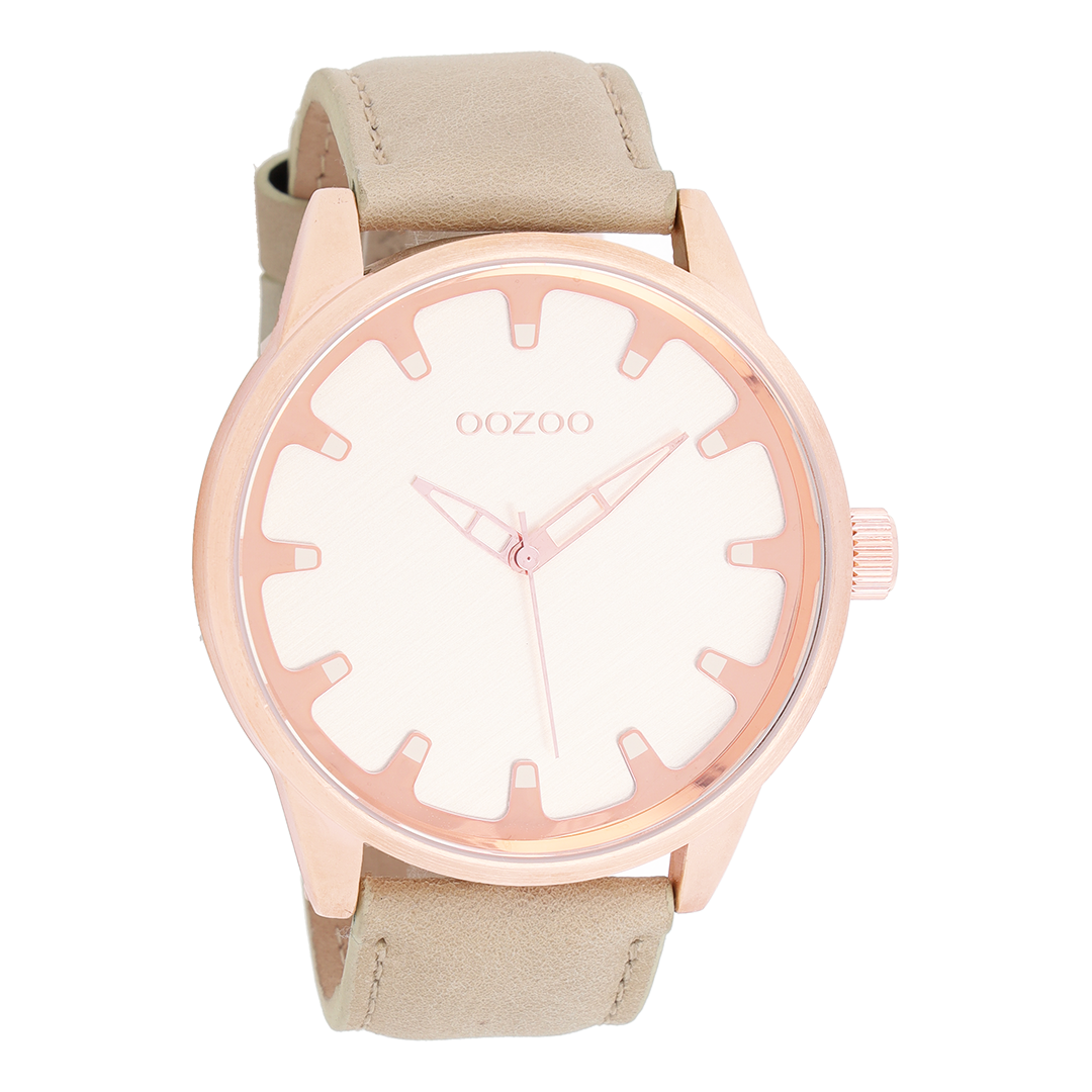 Rose gold coloured OOZOO watch with sand leather strap - C8545