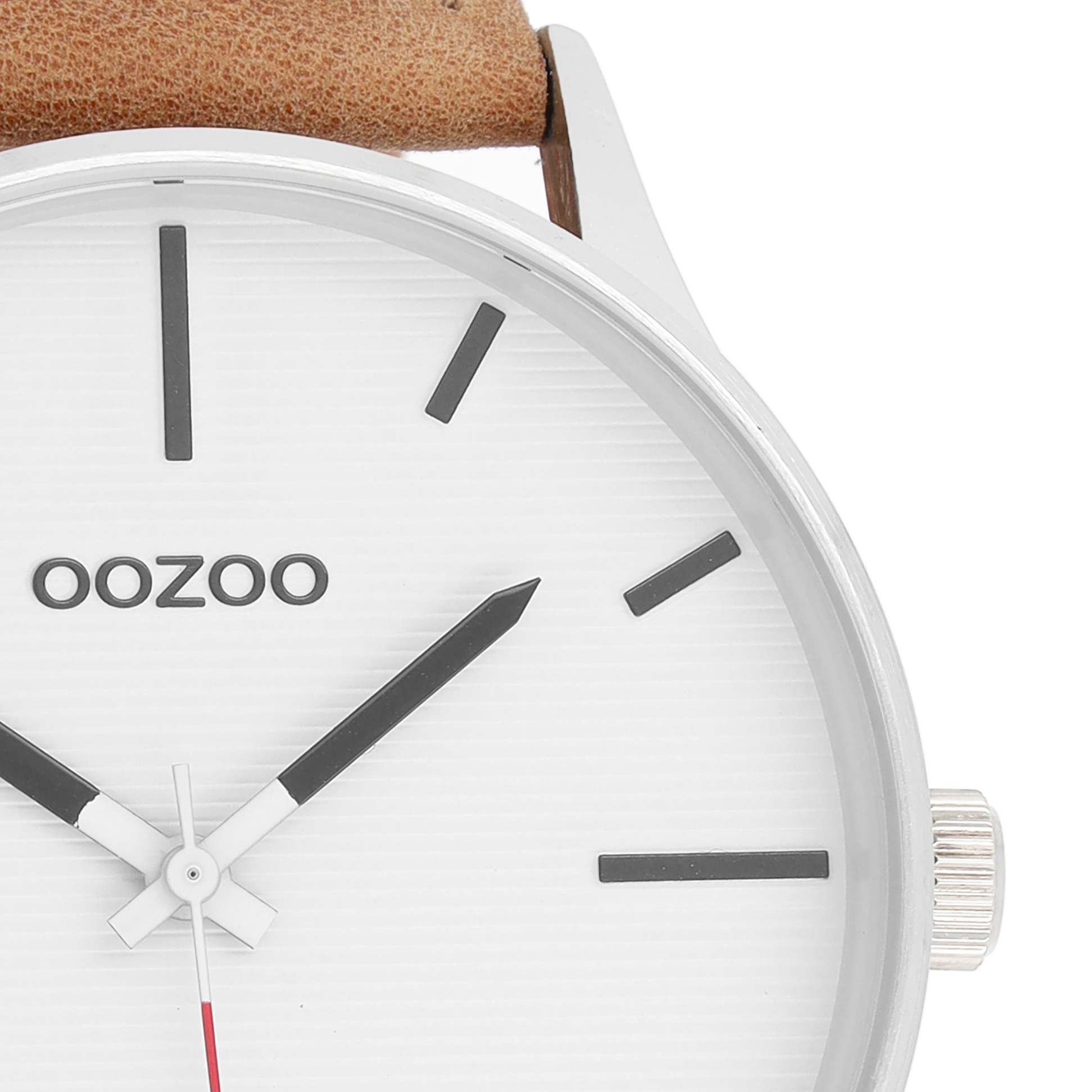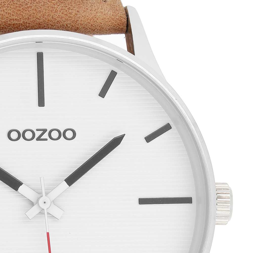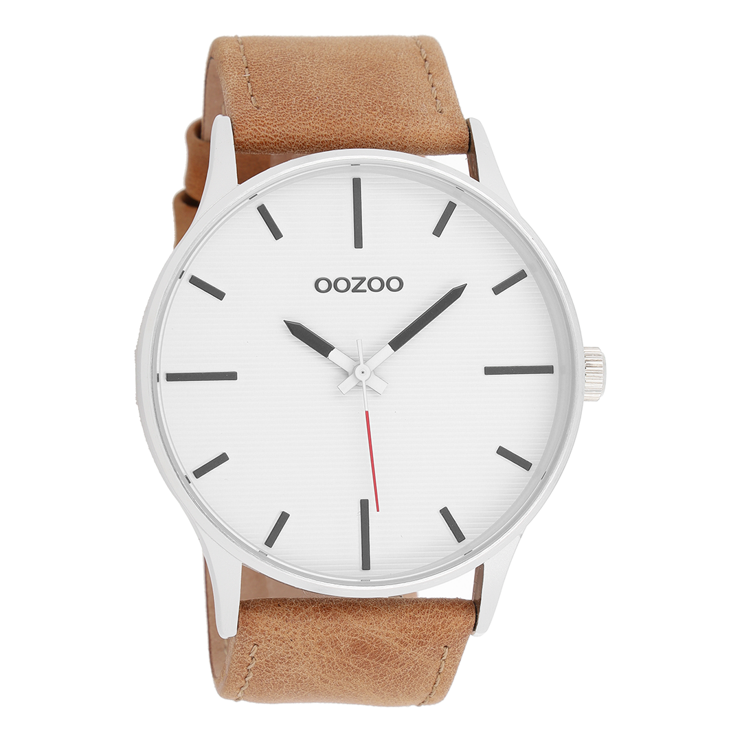 Silver coloured OOZOO watch with brown leather strap - C8550