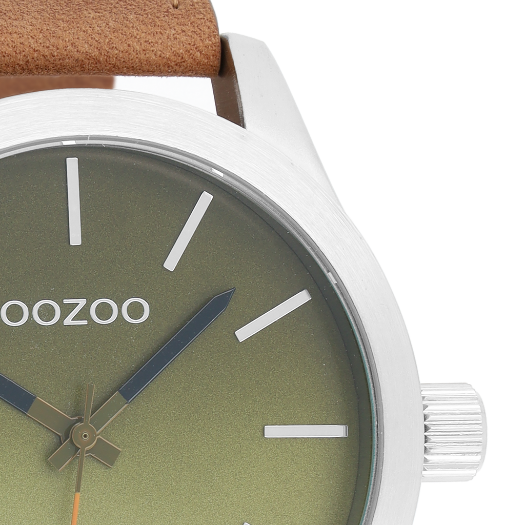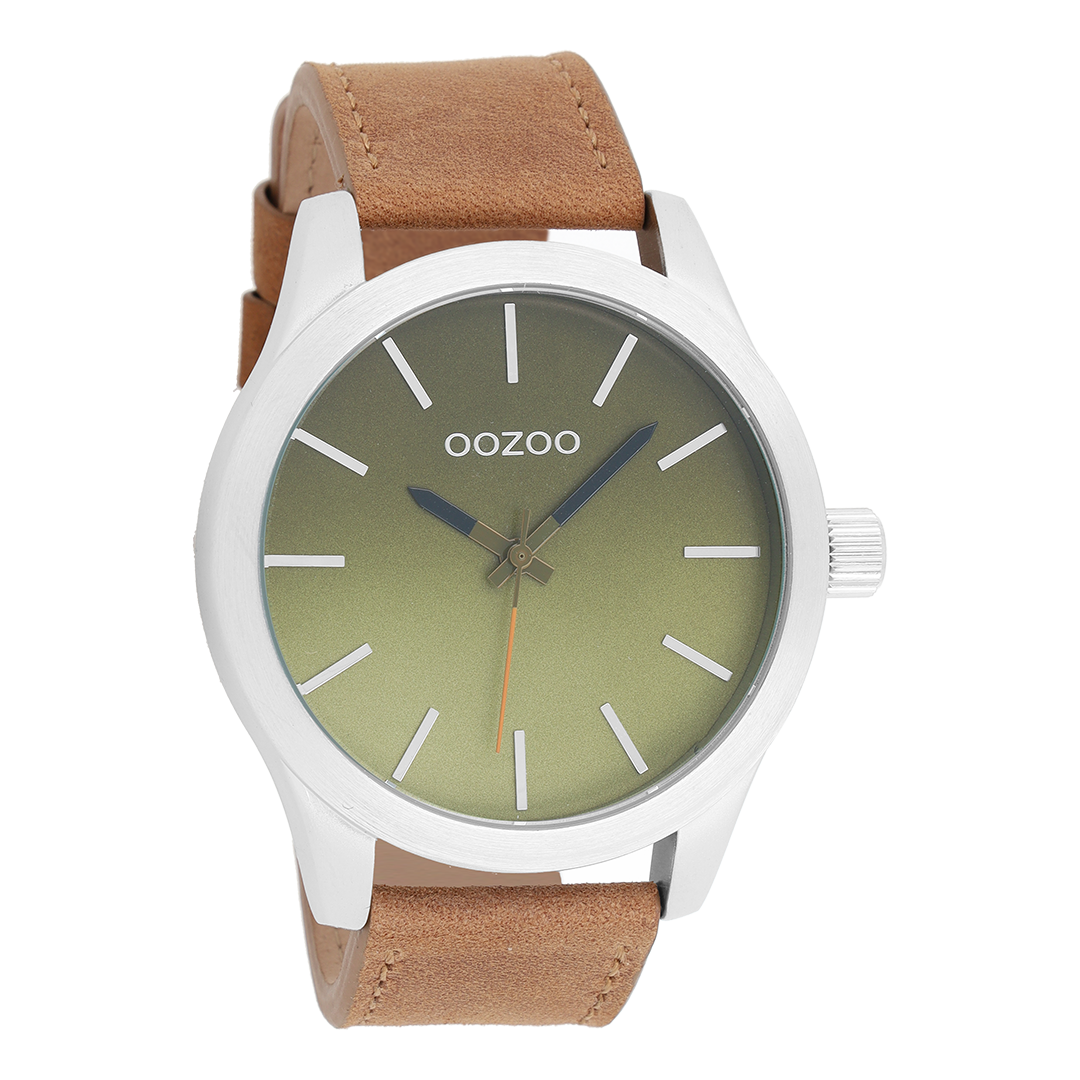 Stand out with this beautiful round gents design from the trendy OOZOO Timepieces collection. The C8556 has a brown leather strap and 48 mm silver coloured metal watch case. You are making quite the fashion statement with this green gradient dial, silver coloured stripes digits and black/green hands. This essential watch for your wardrobe has a mineral glass, stainless steel backplate and is nickel safe. This watch has a 2 Japanese movement and is covered by a 2 year warranty (see section 3 of our Refund, shipping & warranty policy).