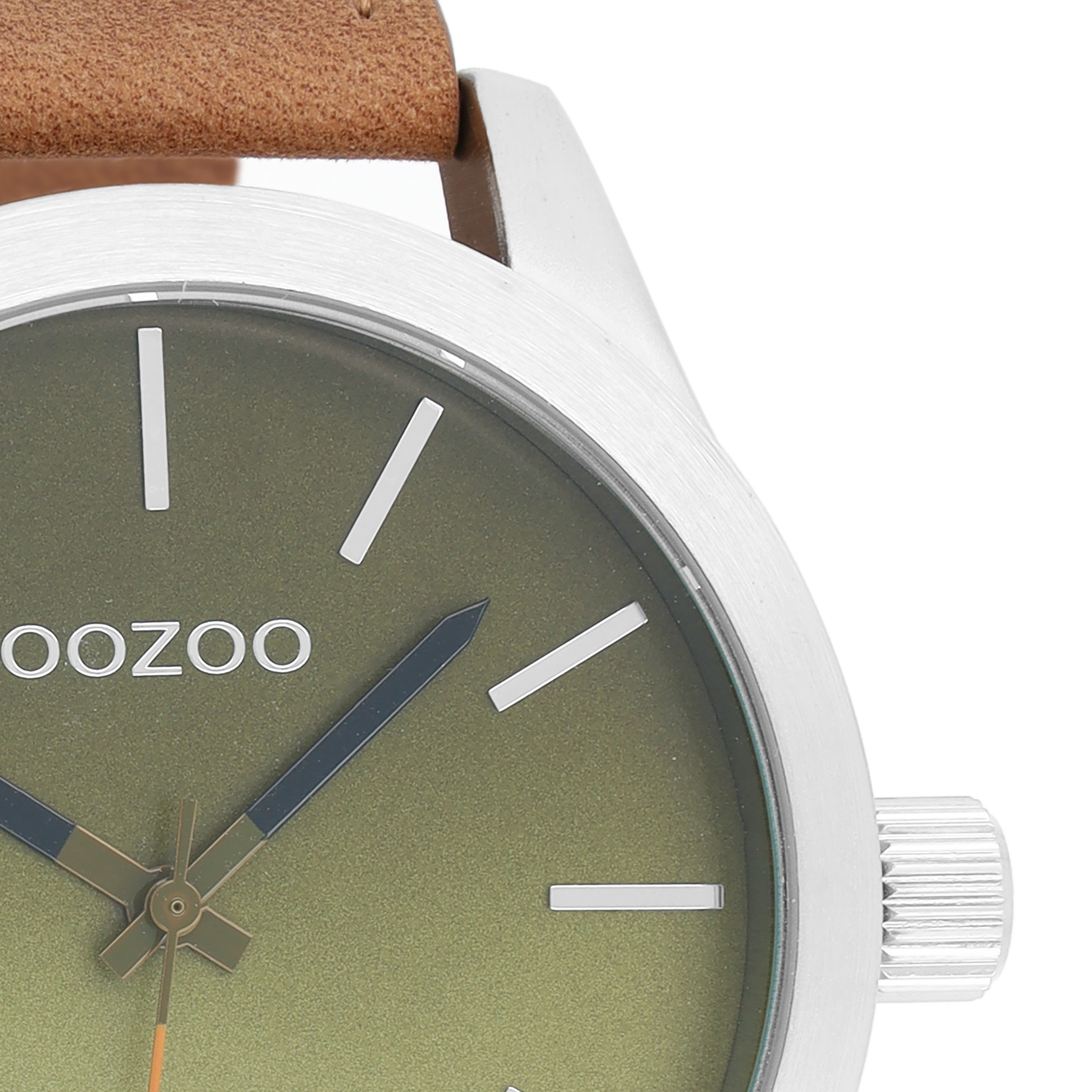 Silver coloured OOZOO watch with brown leather strap - C8556