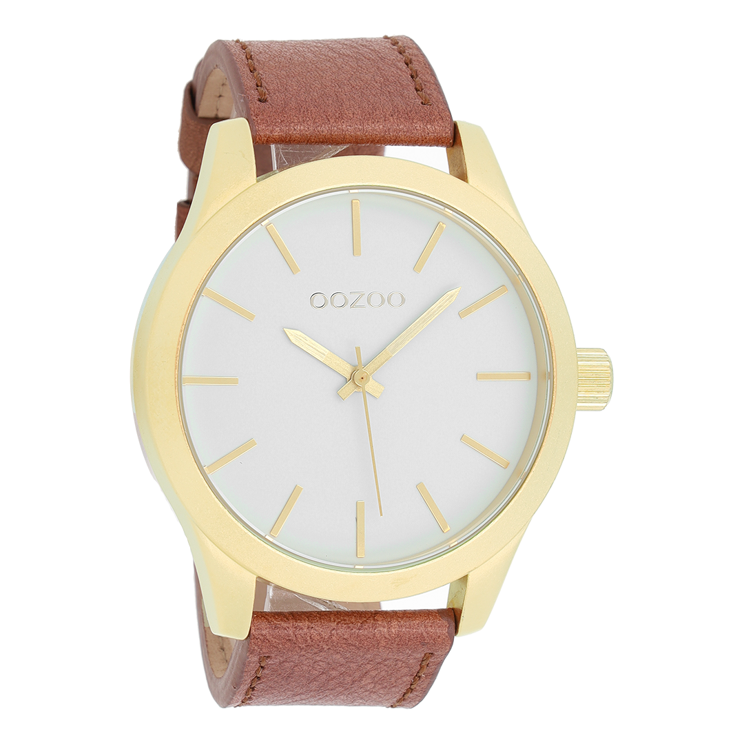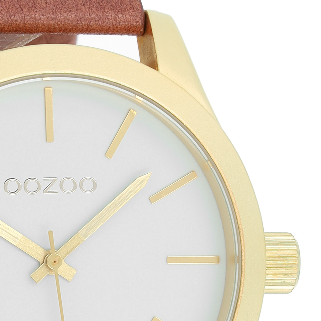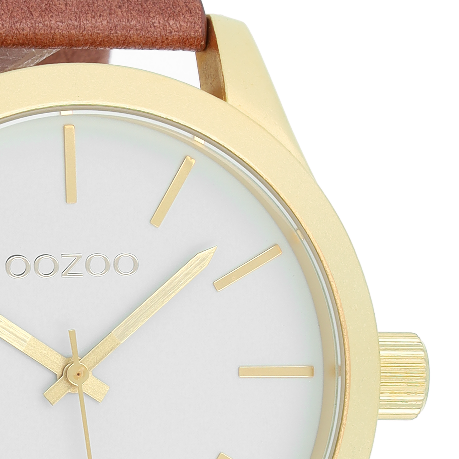 Gold coloured OOZOO watch with brown leather strap - C8557