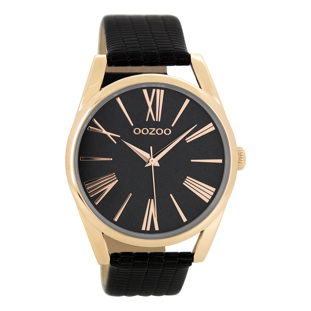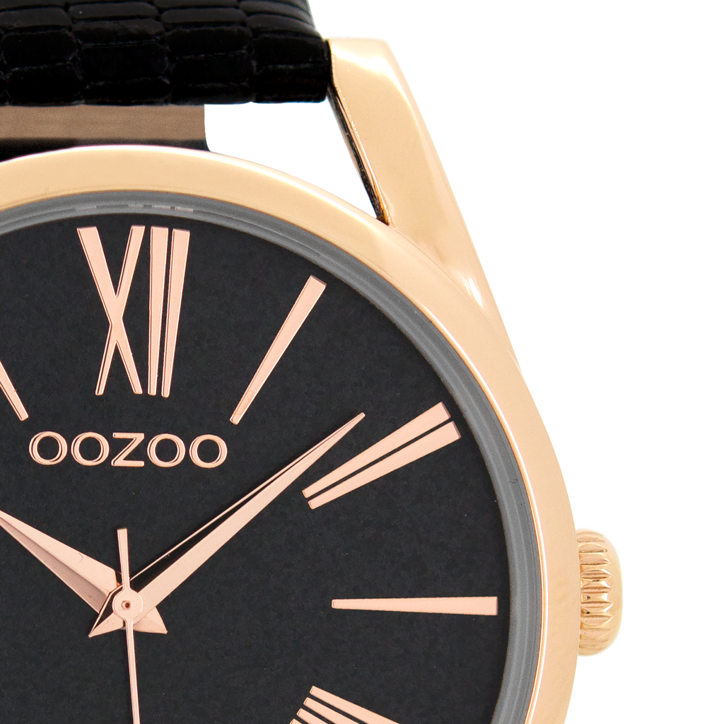 Stand out with this beautiful round ladies design from the trendy OOZOO Timepieces collection. The C8609 has a black metal mesh bracelet and 42 mm rose gold coloured metal watch case. You are making quite the fashion statement with this black dial, rose gold coloured stripes and roman numerals digits and matching hands. This essential watch for your wardrobe has a mineral glass, stainless steel backplate and is nickel safe. This watch has a 2 Japanese movement and is covered by a 2 year warranty (see section 3 of our Refund, shipping & warranty policy).
