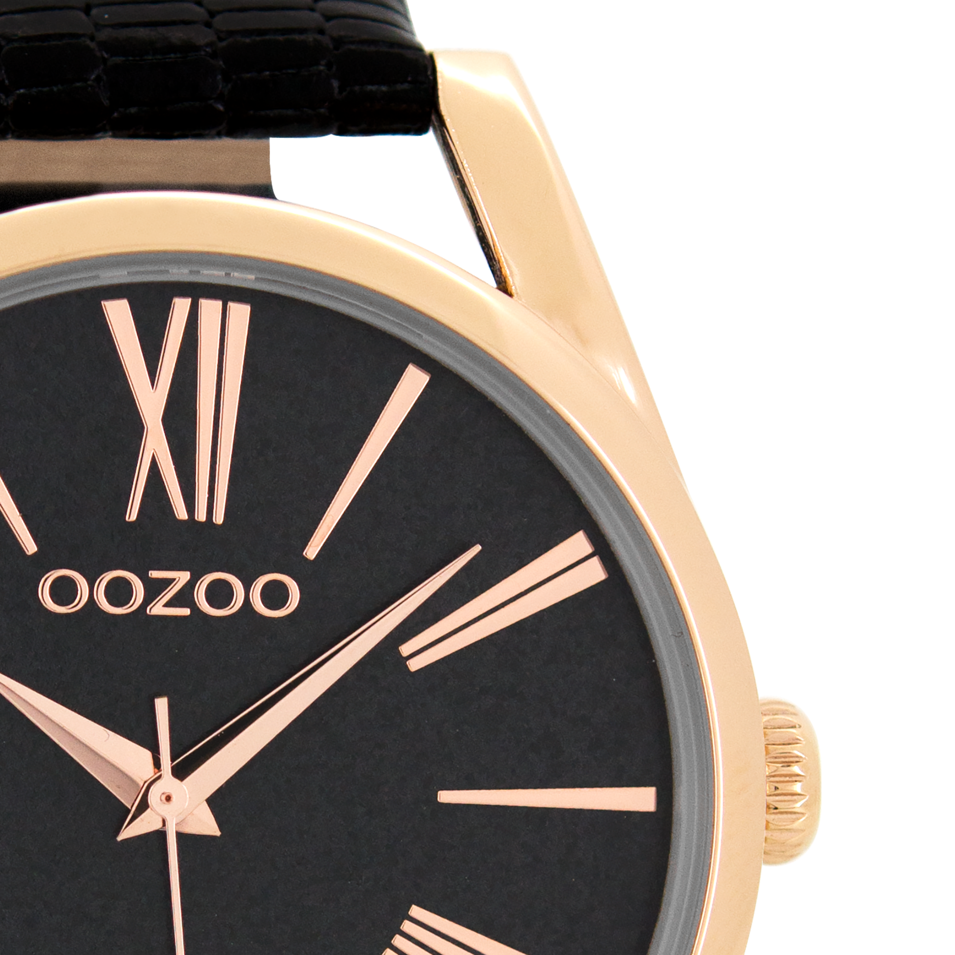 Rose gold coloured OOZOO watch with black metal mesh bracelet - C8609
