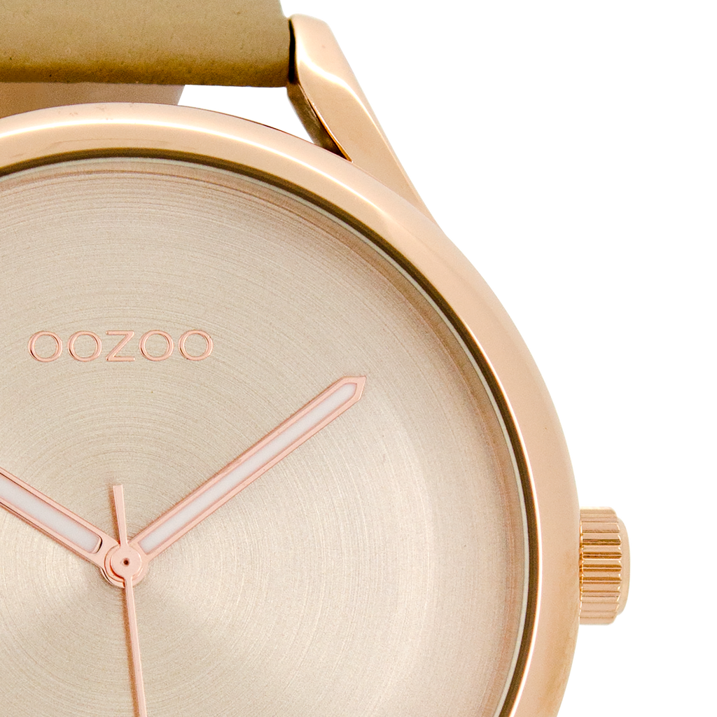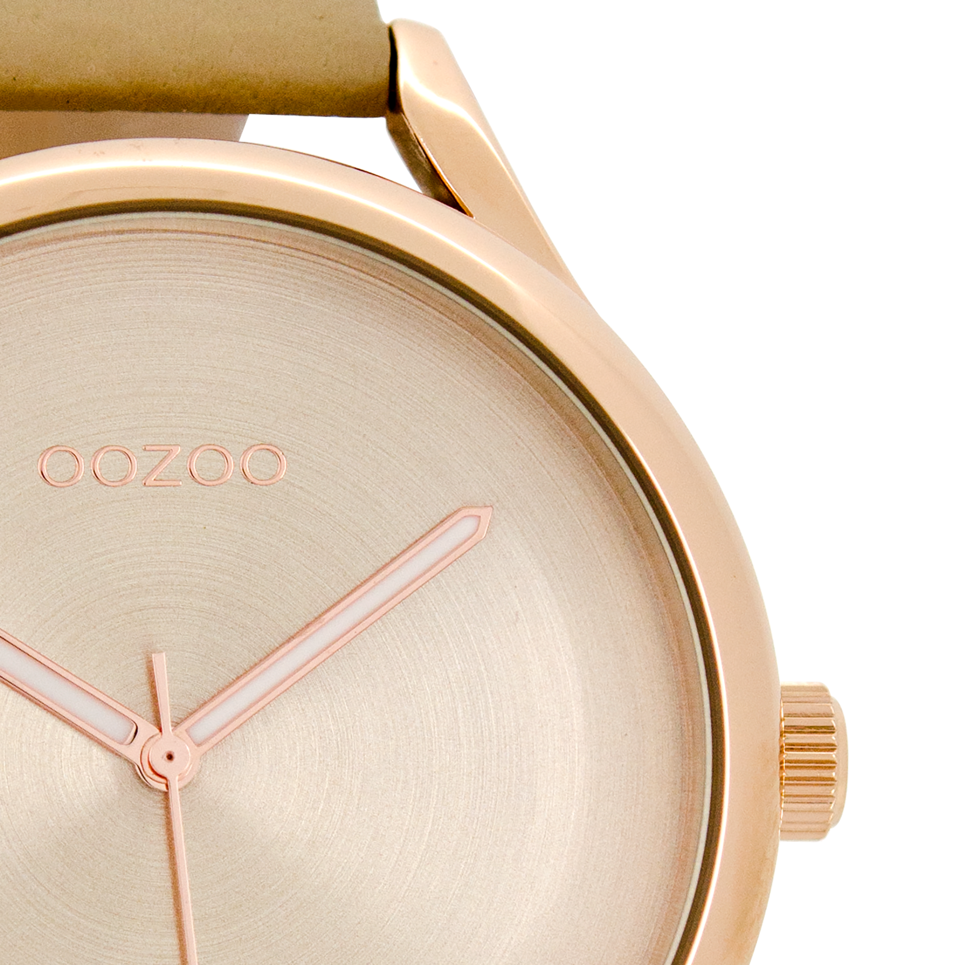 Rose gold coloured OOZOO watch with sand leather strap - C8630