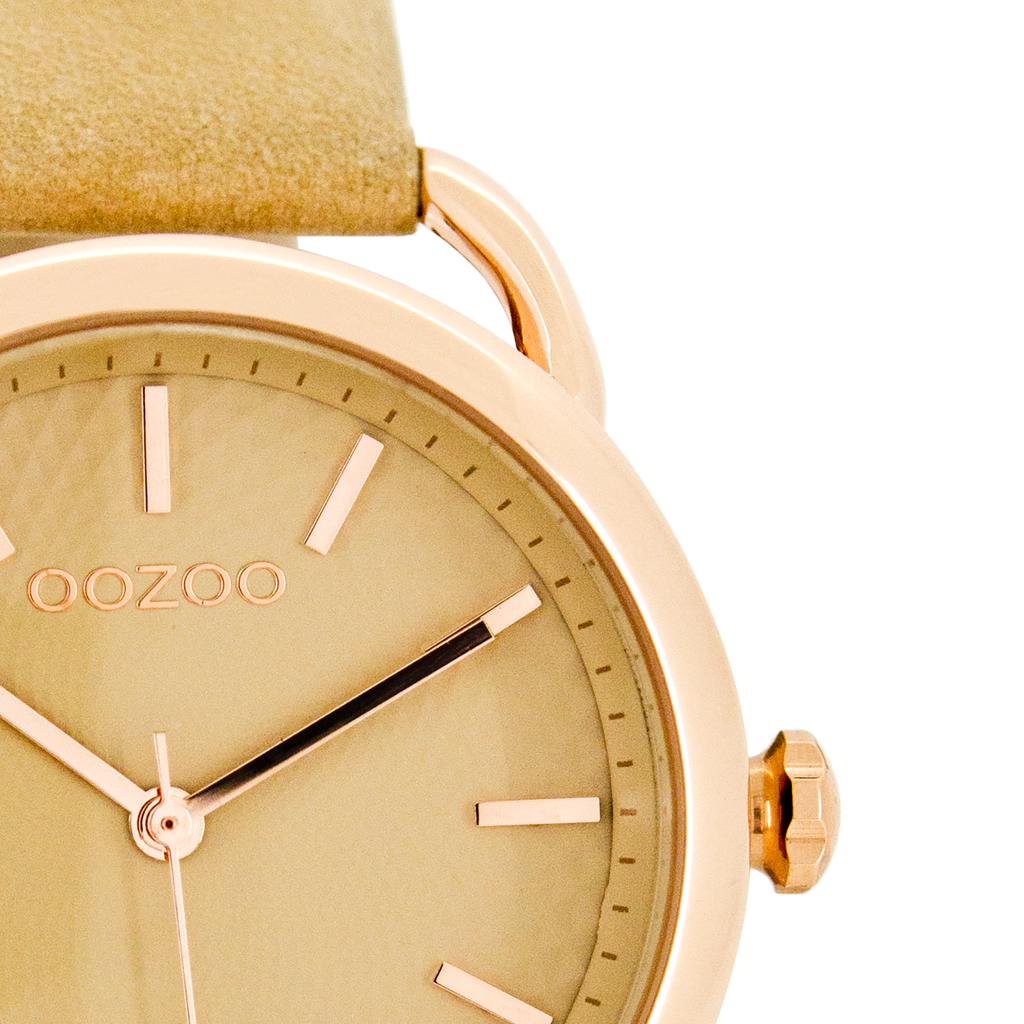 Rose gold coloured OOZOO watch with camel leather strap - C8717