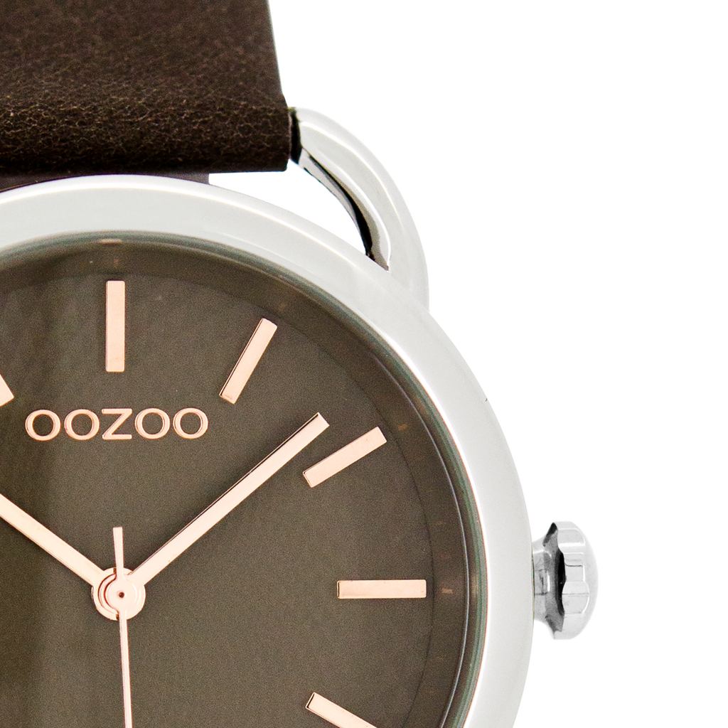 Silver coloured OOZOO watch with brown leather strap - C8719