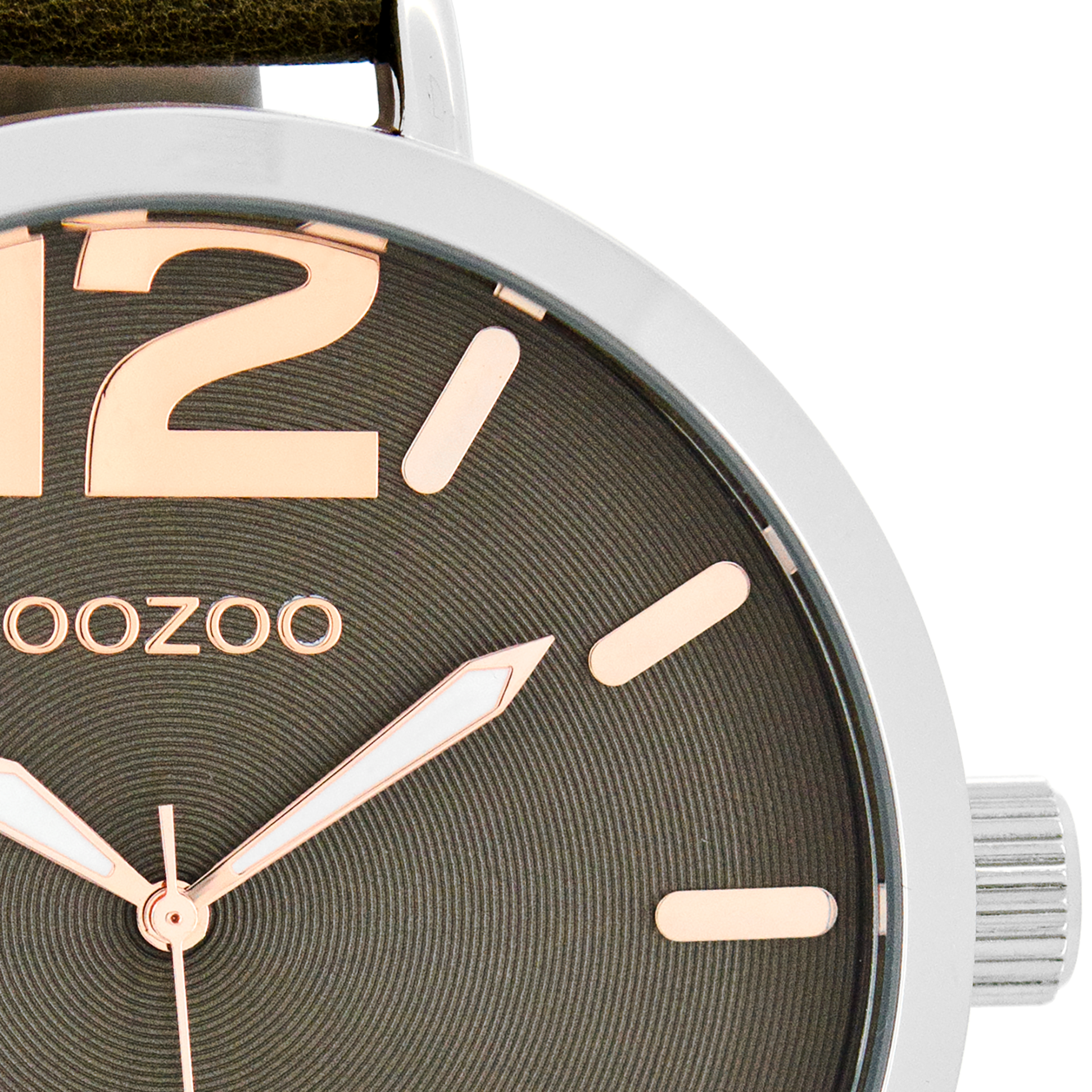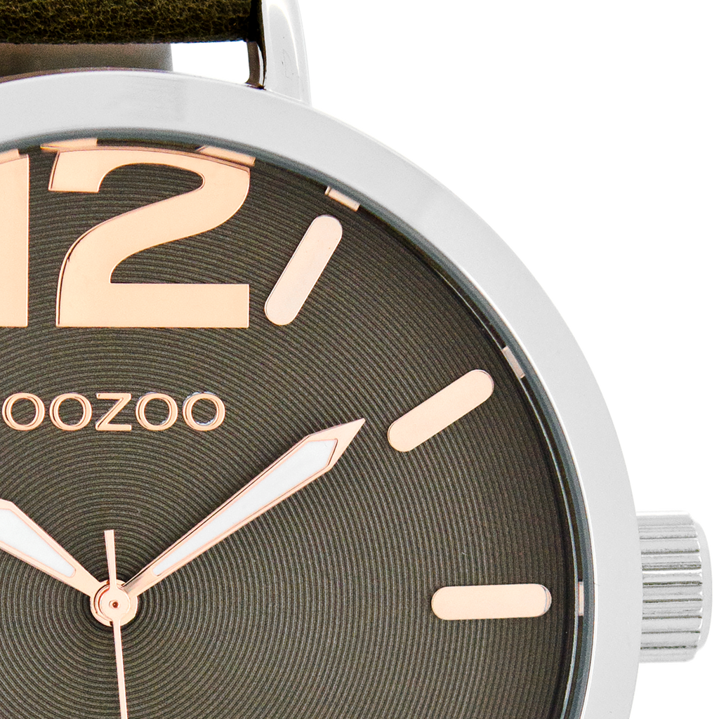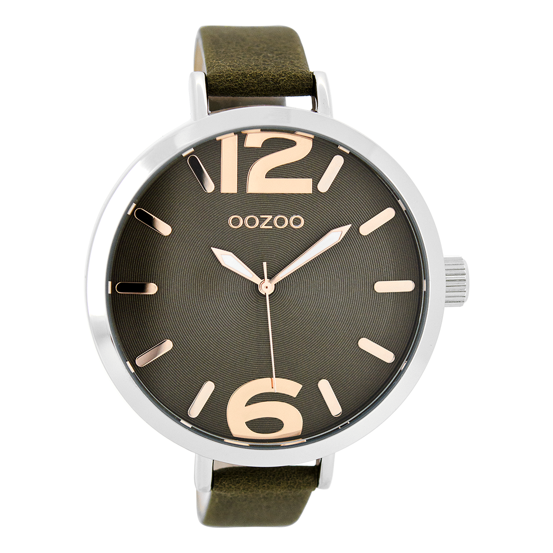 Silver coloured OOZOO watch with dark brown leather strap - C8723