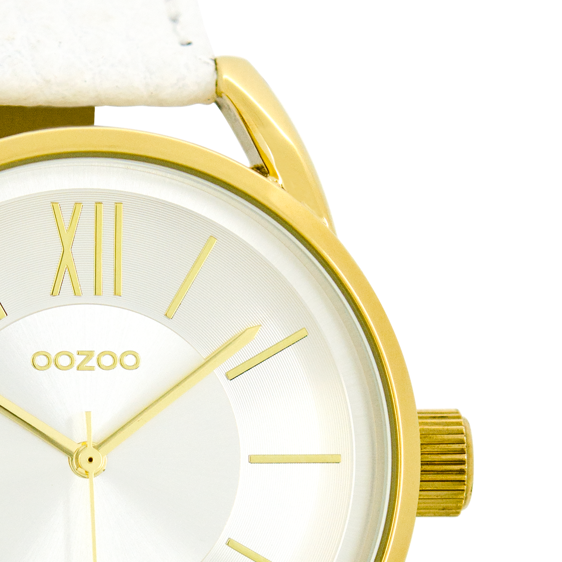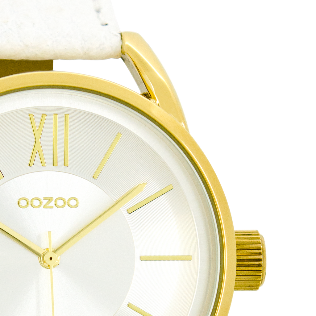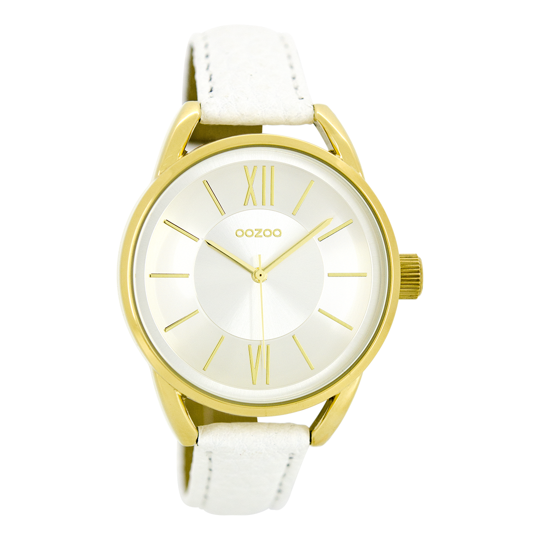 Stand out with this beautiful round ladies design from the trendy OOZOO Timepieces collection. The C8725 has a stitched white leather strap and 40 mm gold coloured metal watch case. You are making quite the fashion statement with this gold coloured sunray dial, gold coloured Roman numerals digits and matching hands. This essential watch for your wardrobe has a mineral glass, stainless steel backplate and is nickel safe. This watch has a 2 Japanese movement and is covered by a 2 year warranty (see section 3 of our Refund, shipping & warranty policy).