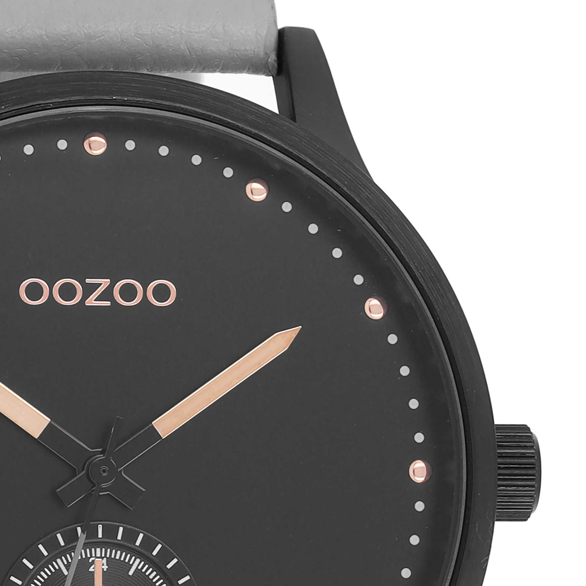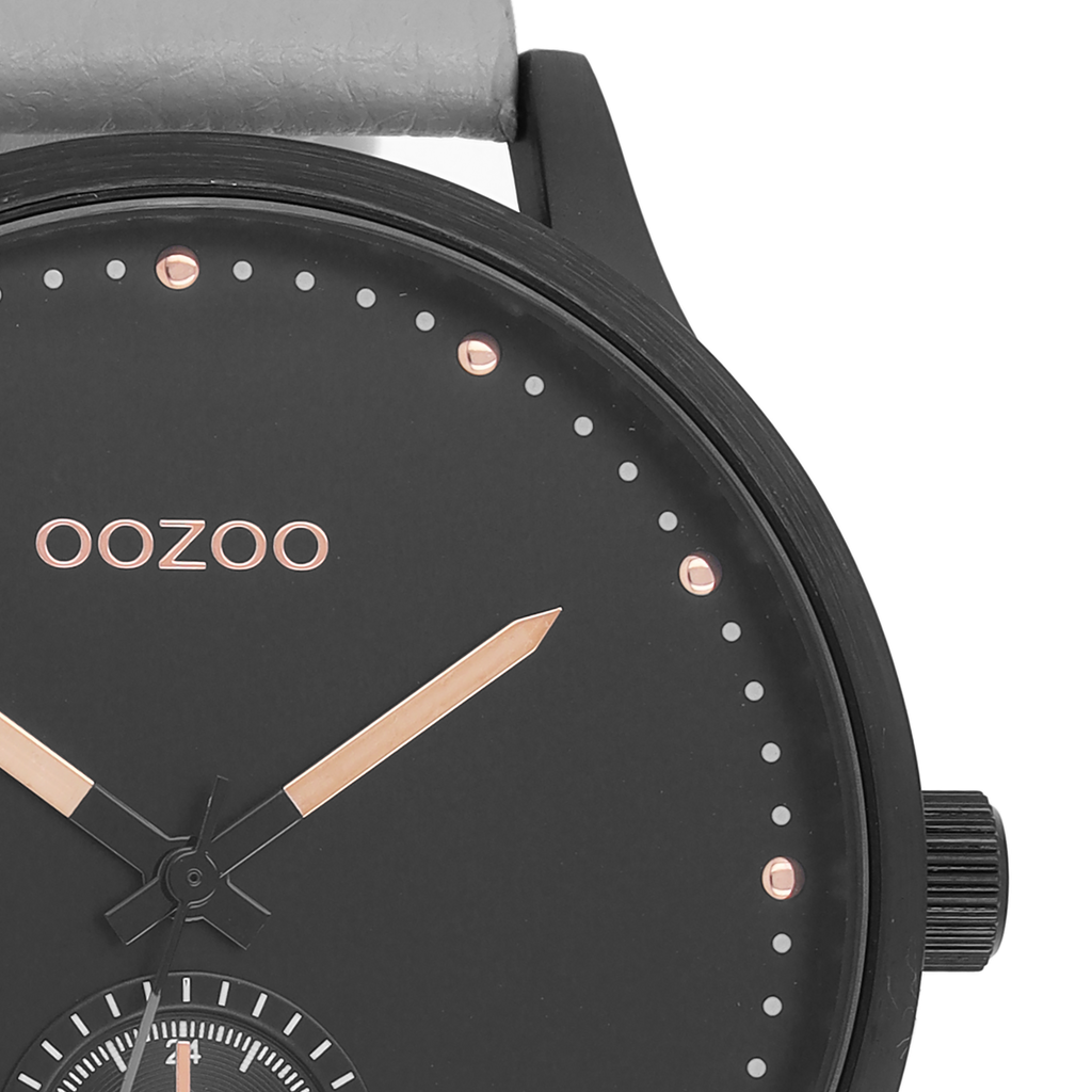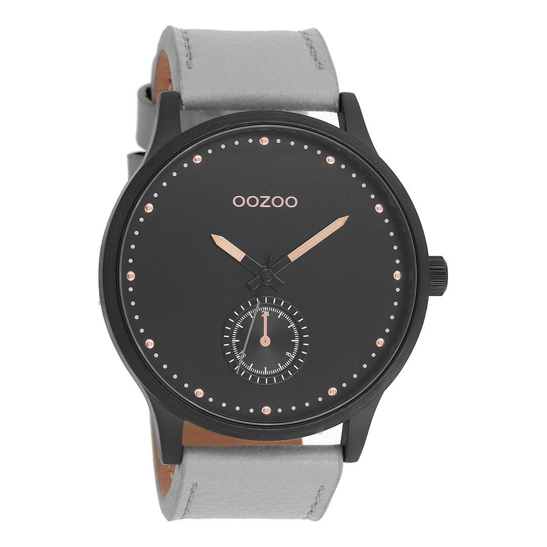 Stand out with this beautiful round gents design from the trendy OOZOO Timepieces collection. The C9006 has a stone grey leather strap and 48 mm black metal watch case. You are making quite the fashion statement with this black dial, rose gold coloured dots digits and rose gold coloured/black hands. This essential watch for your wardrobe has a mineral glass, stainless steel backplate and is nickel safe. This watch has a 2 Japanese movement and is covered by a 2 year warranty (see section 3 of our Refund, shipping & warranty policy).