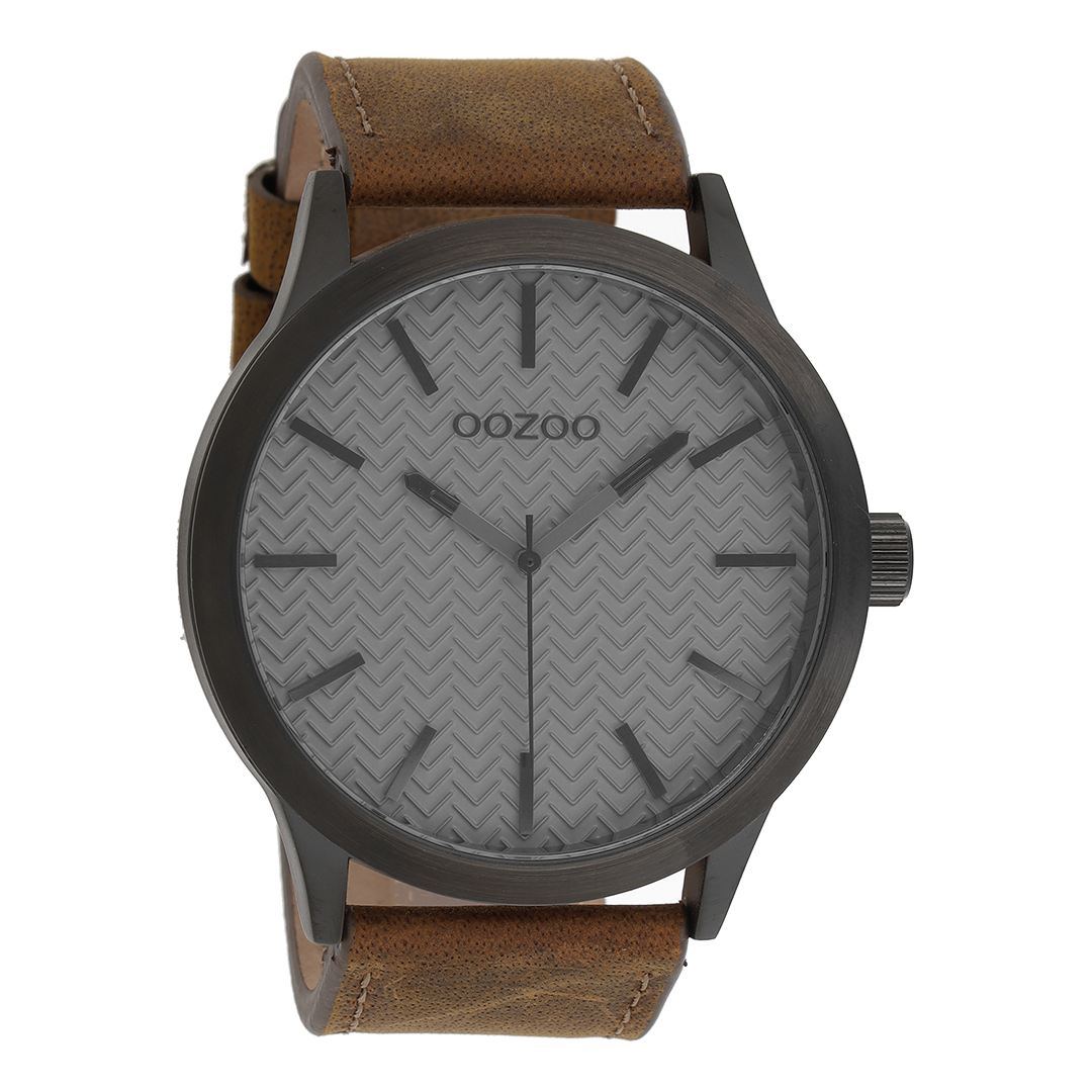 Stand out with this beautiful round gents design from the trendy OOZOO Timepieces collection. The C9012 has a brown leather strap and 50 mm black metal watch case. You are making quite the fashion statement with this grey mosaic dial, black stripes digits and black/grey hands. This essential watch for your wardrobe has a mineral glass, stainless steel backplate and is nickel safe. This watch has a 2 Japanese movement and is covered by a 2 year warranty (see section 3 of our Refund, shipping & warranty policy).