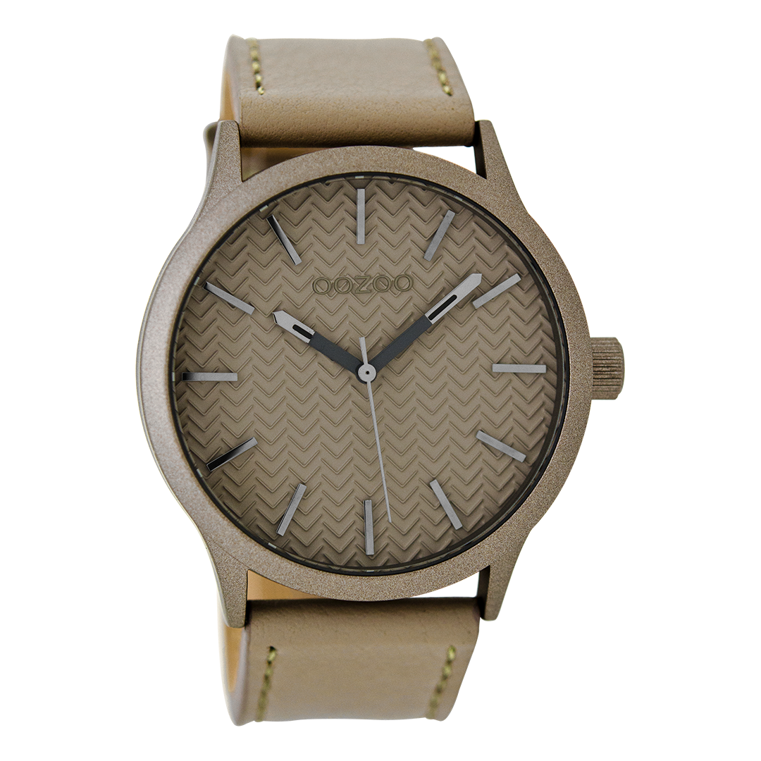 Stand out with this beautiful round unisex design from the trendy OOZOO Timepieces collection. The C9018 has a taupe leather strap and 45 mm taupe matte watch case. You are making quite the fashion statement with this taupe mosaic dial, titanium stripes digits and black/titanium hands. This essential watch for your wardrobe has a mineral glass, stainless steel backplate and is nickel safe. This watch has a 2 Japanese movement and is covered by a 2 year warranty (see section 3 of our Refund, shipping & warranty policy).