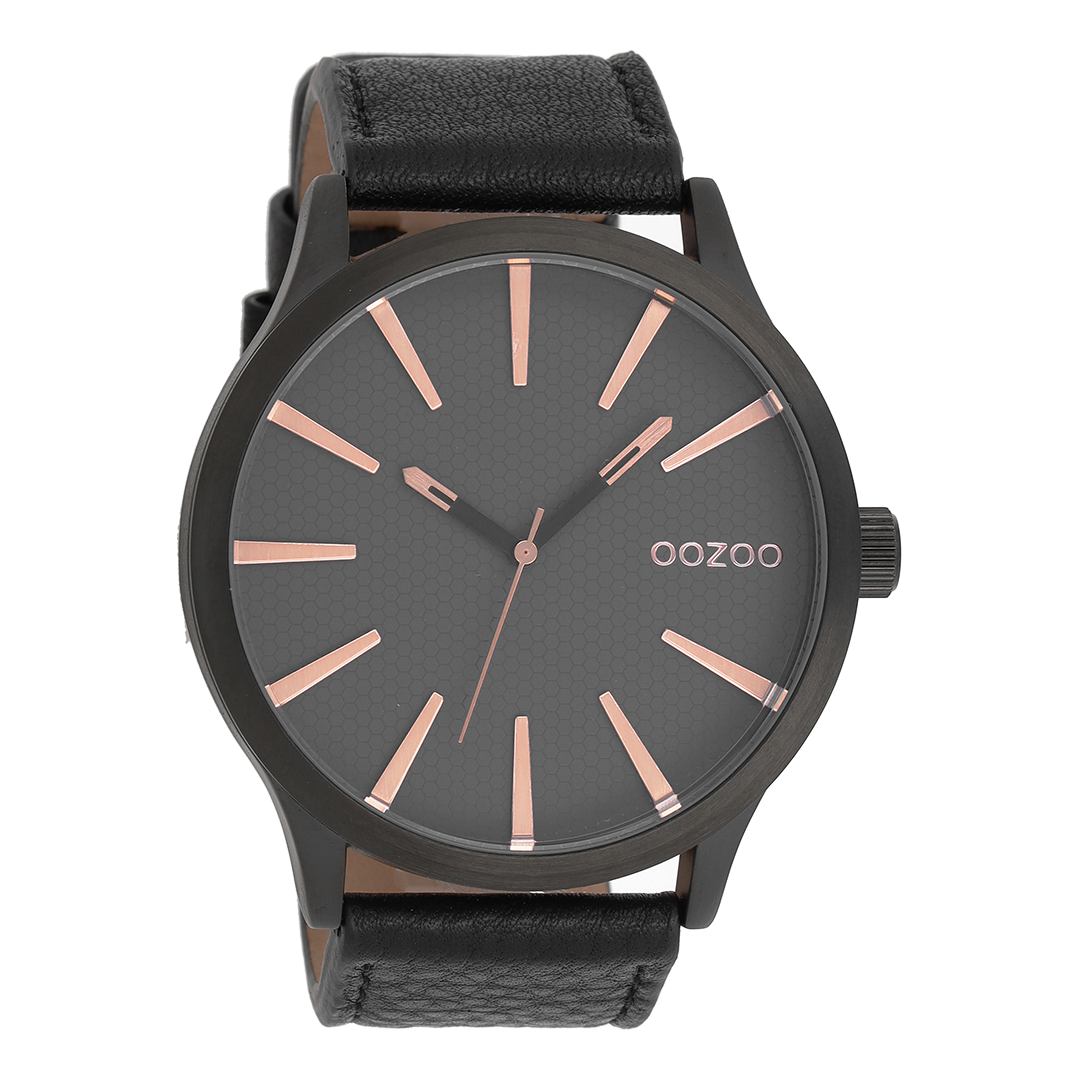Black OOZOO watch with leather strap - C9043