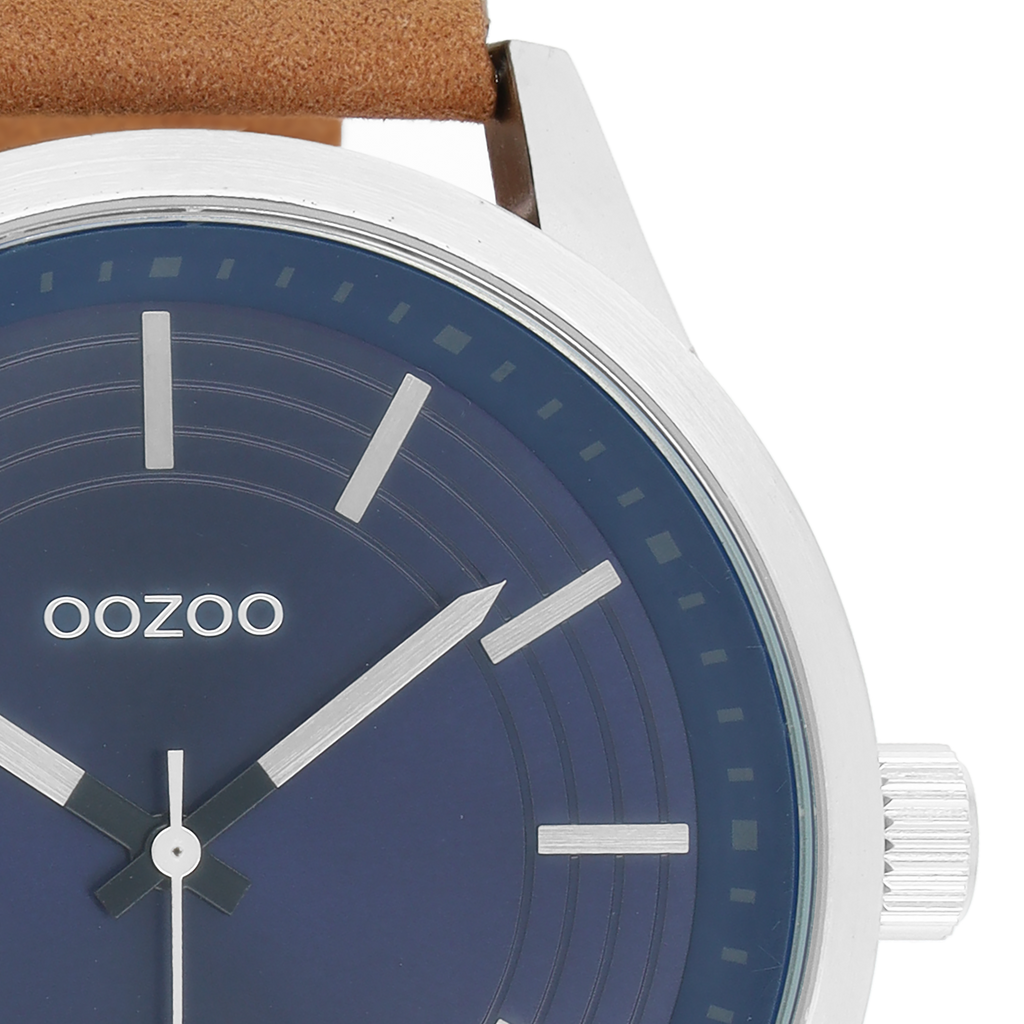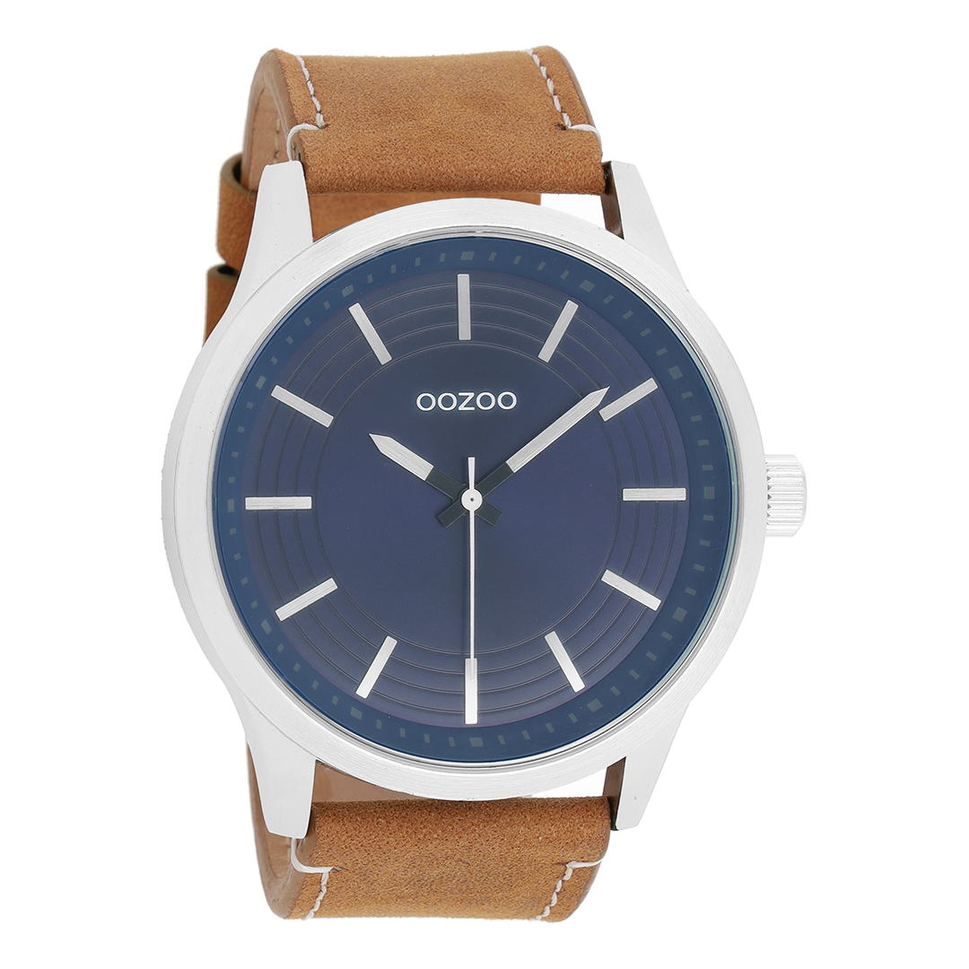 Stand out with this beautiful round gents design from the trendy OOZOO Timepieces collection. The C9075 has a camel leather strap and 50 mm silver coloured metal watch case. You are making quite the fashion statement with this blue chrono dial, silver coloured stripes digits and silver coloured/black hands. This essential watch for your wardrobe has a mineral glass, stainless steel backplate and is nickel safe. This watch has a 2 Japanese movement and is covered by a 2 year warranty (see section 3 of our Refund, shipping & warranty policy).