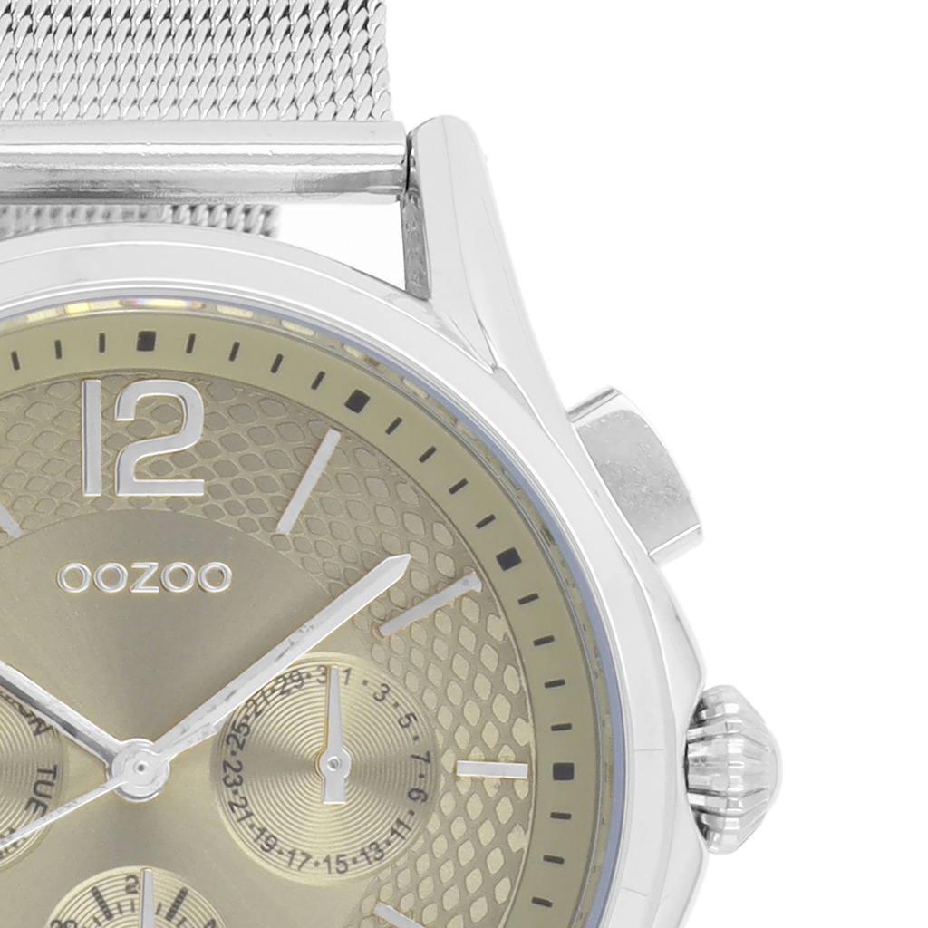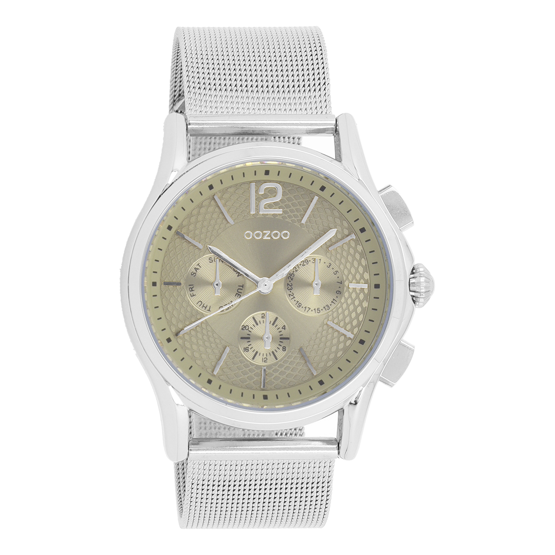 Silver coloured OOZOO watch with metal mesh bracelet - C9105