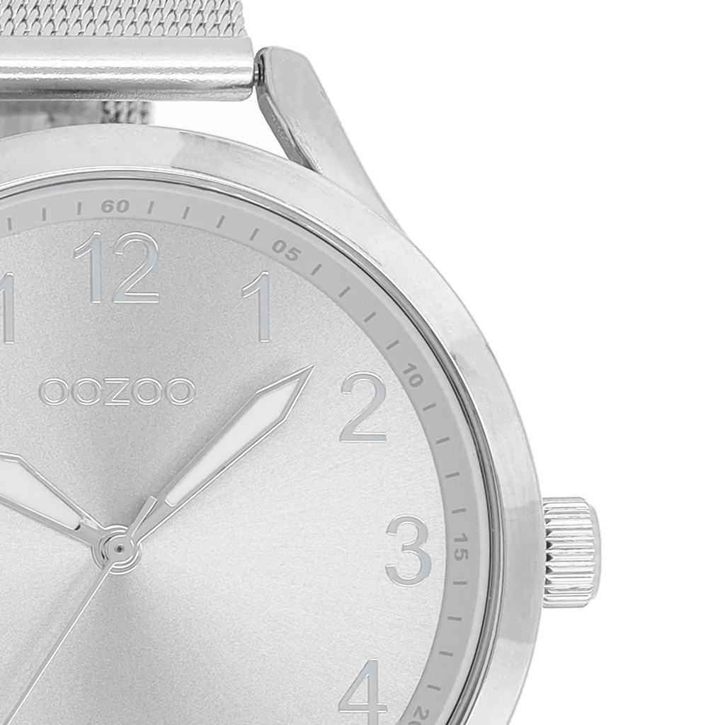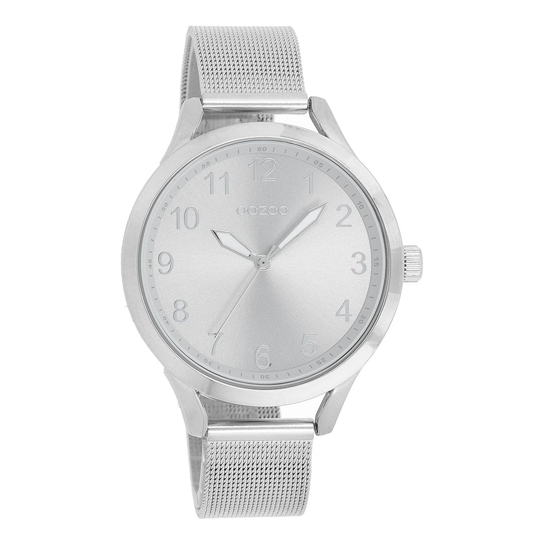 Silver coloured OOZOO watch with metal mesh bracelet - C9115