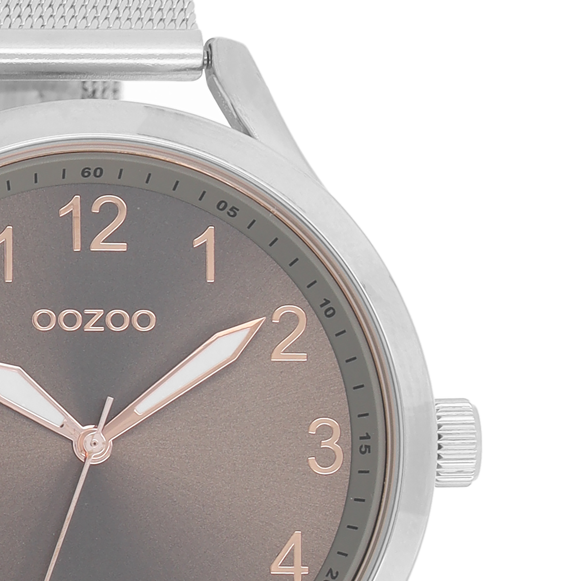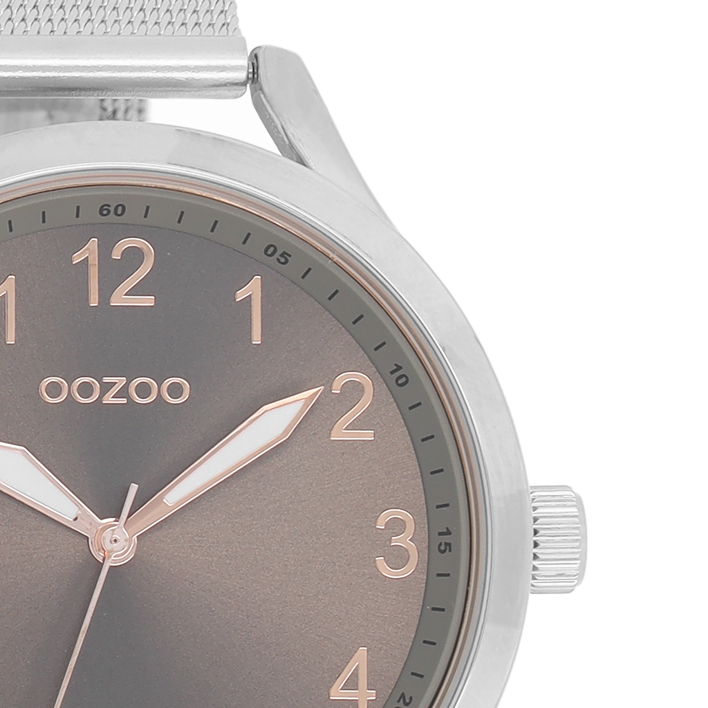 Silver coloured OOZOO watch with metal mesh bracelet - C9116
