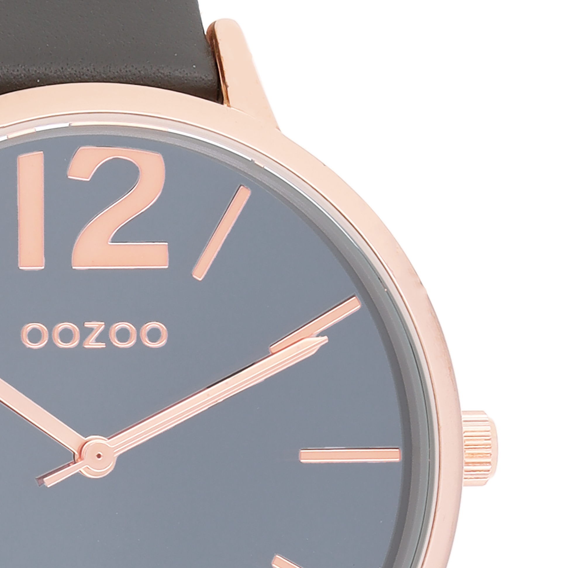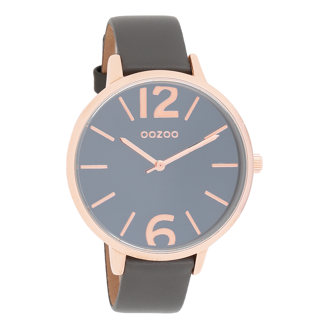 Rose gold coloured OOZOO watch with elephant grey leather strap - C9153