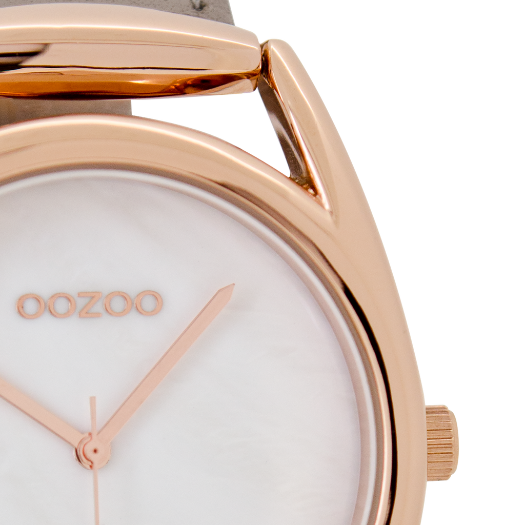 Rose gold coloured OOZOO watch with taupe leather strap - C9168
