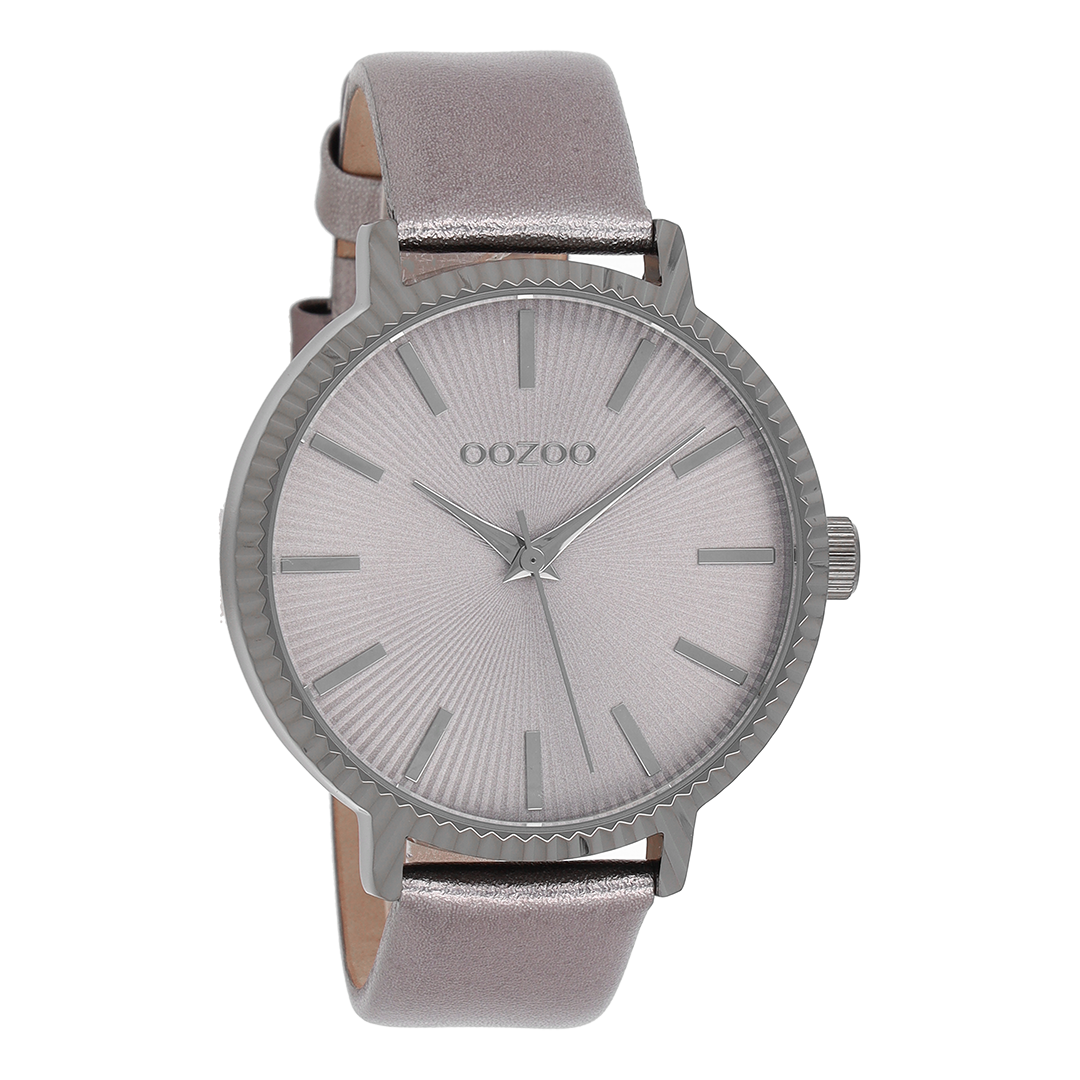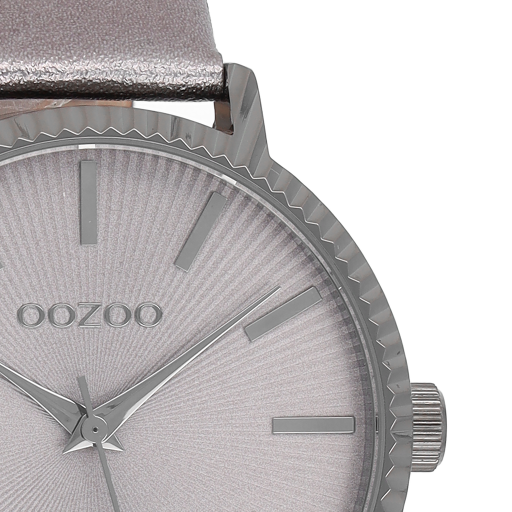 Titanium OOZOO watch with silver coloured leather strap - C9198