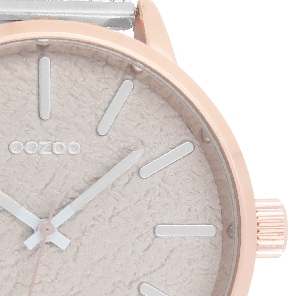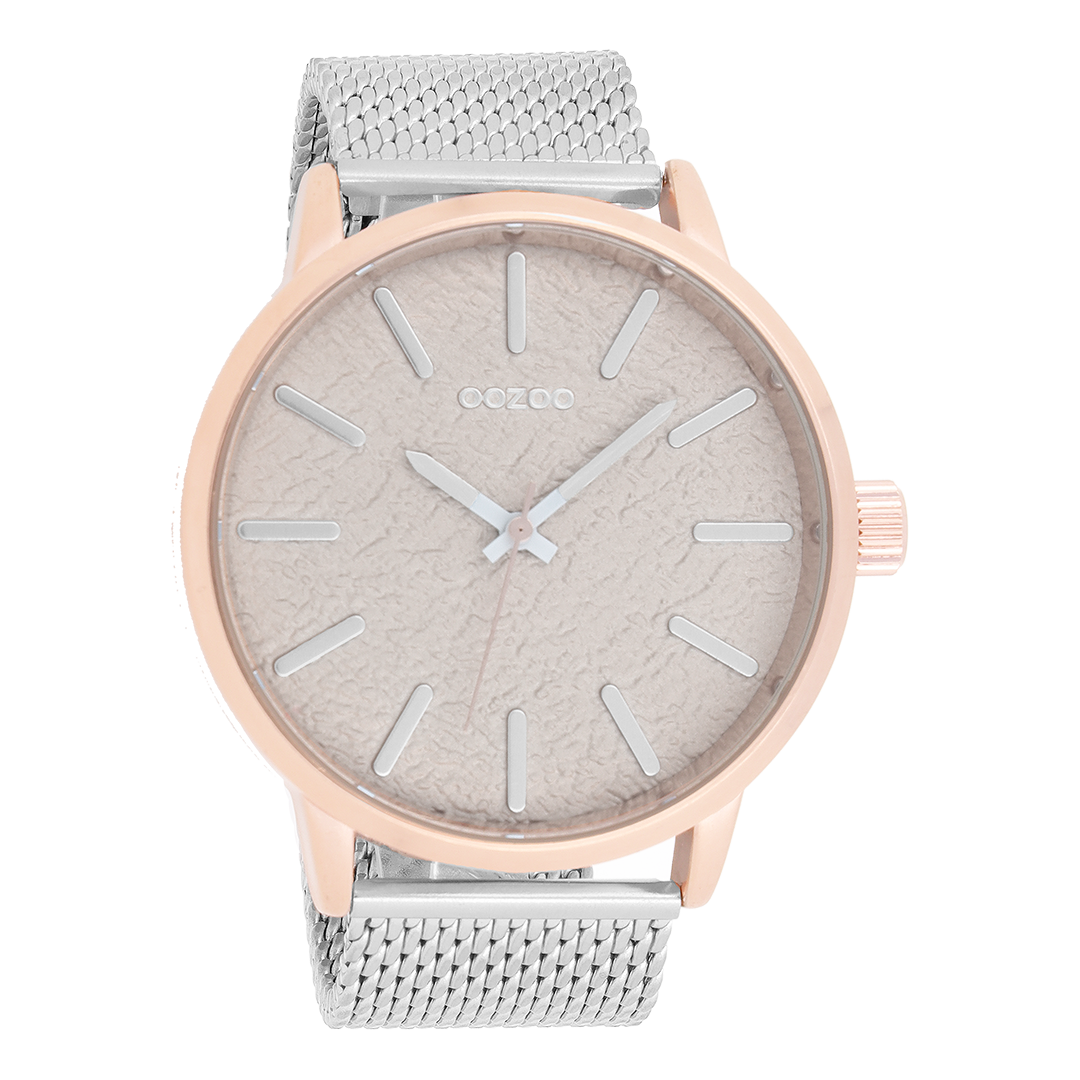 Rose gold coloured OOZOO watch with silver coloured metal mesh bracelet - C9232