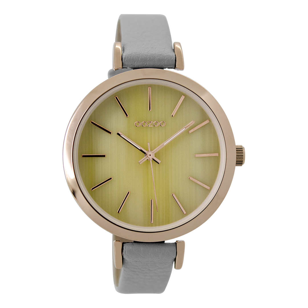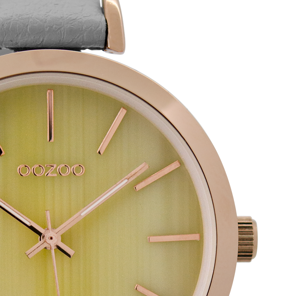 Rose gold coloured OOZOO watch with stone grey leather strap - C9235