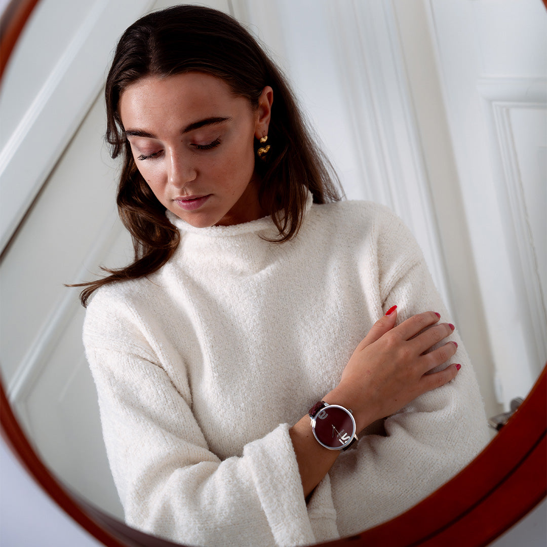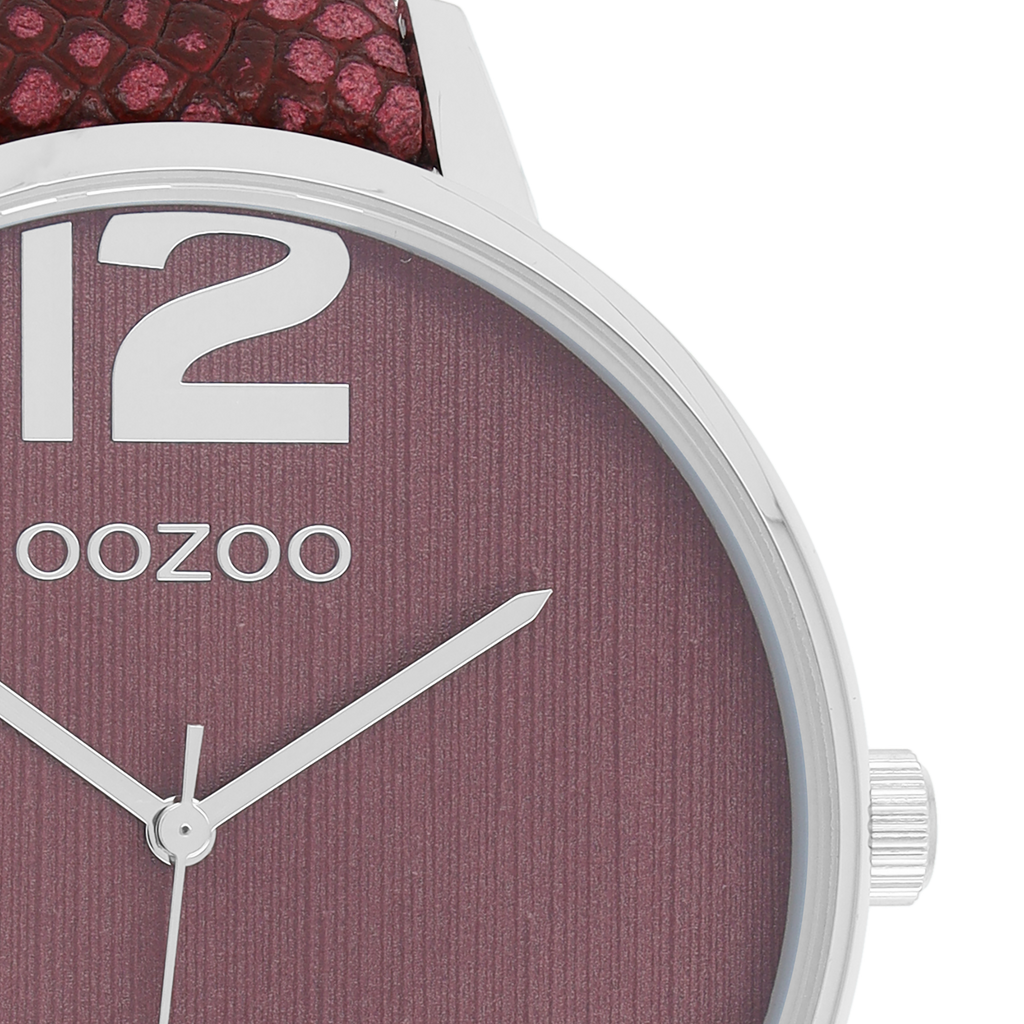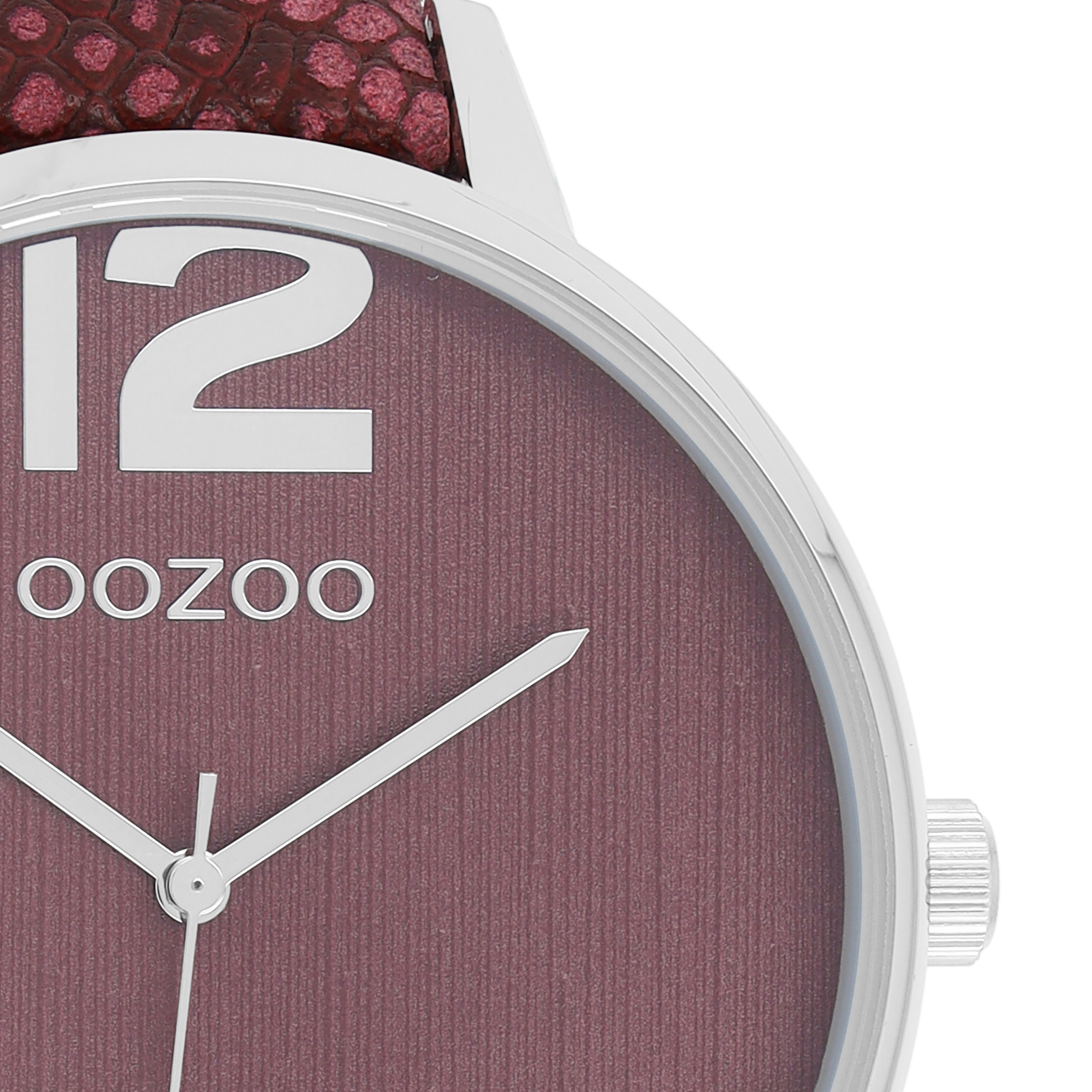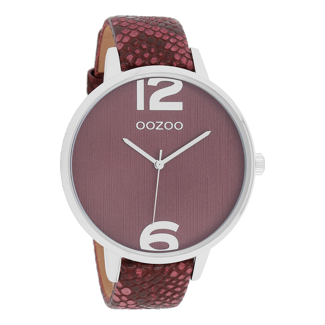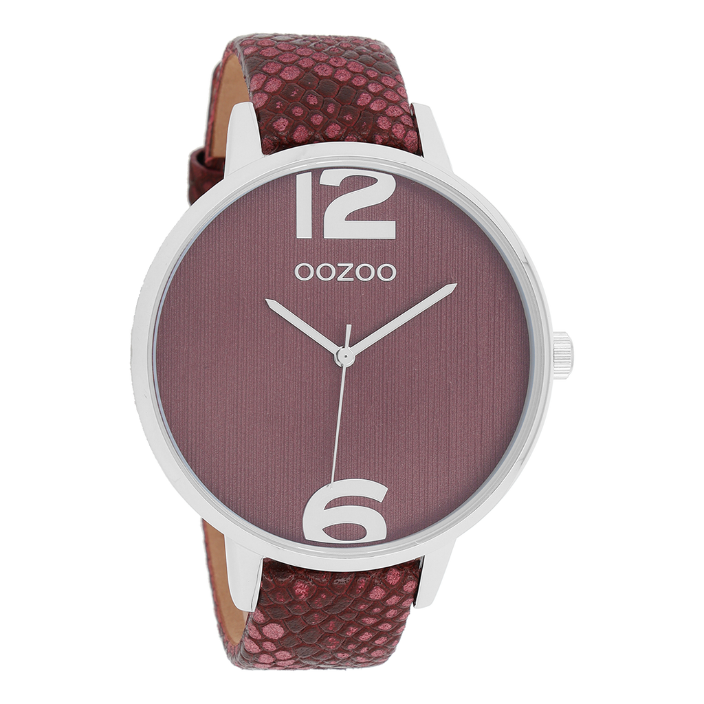 Silver coloured OOZOO watch with burgundy leather strap - C9241