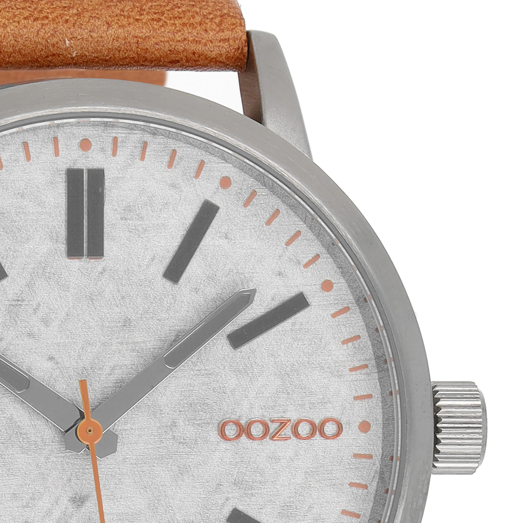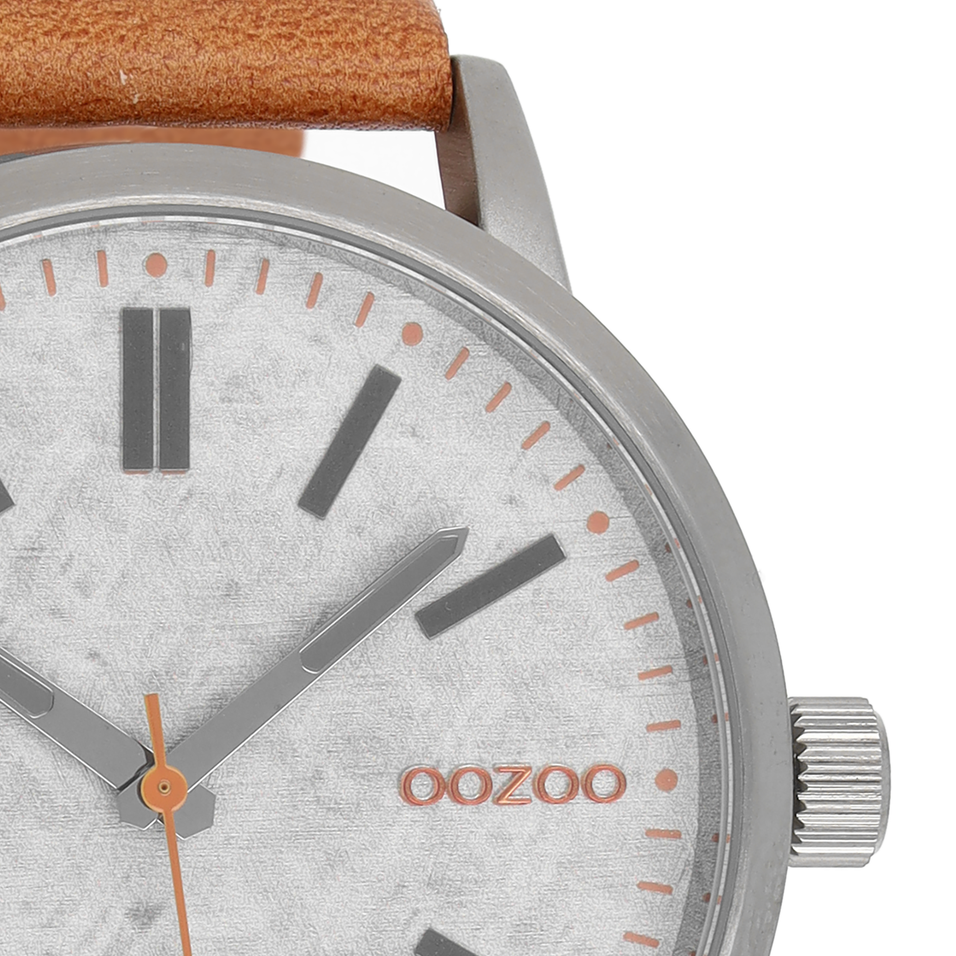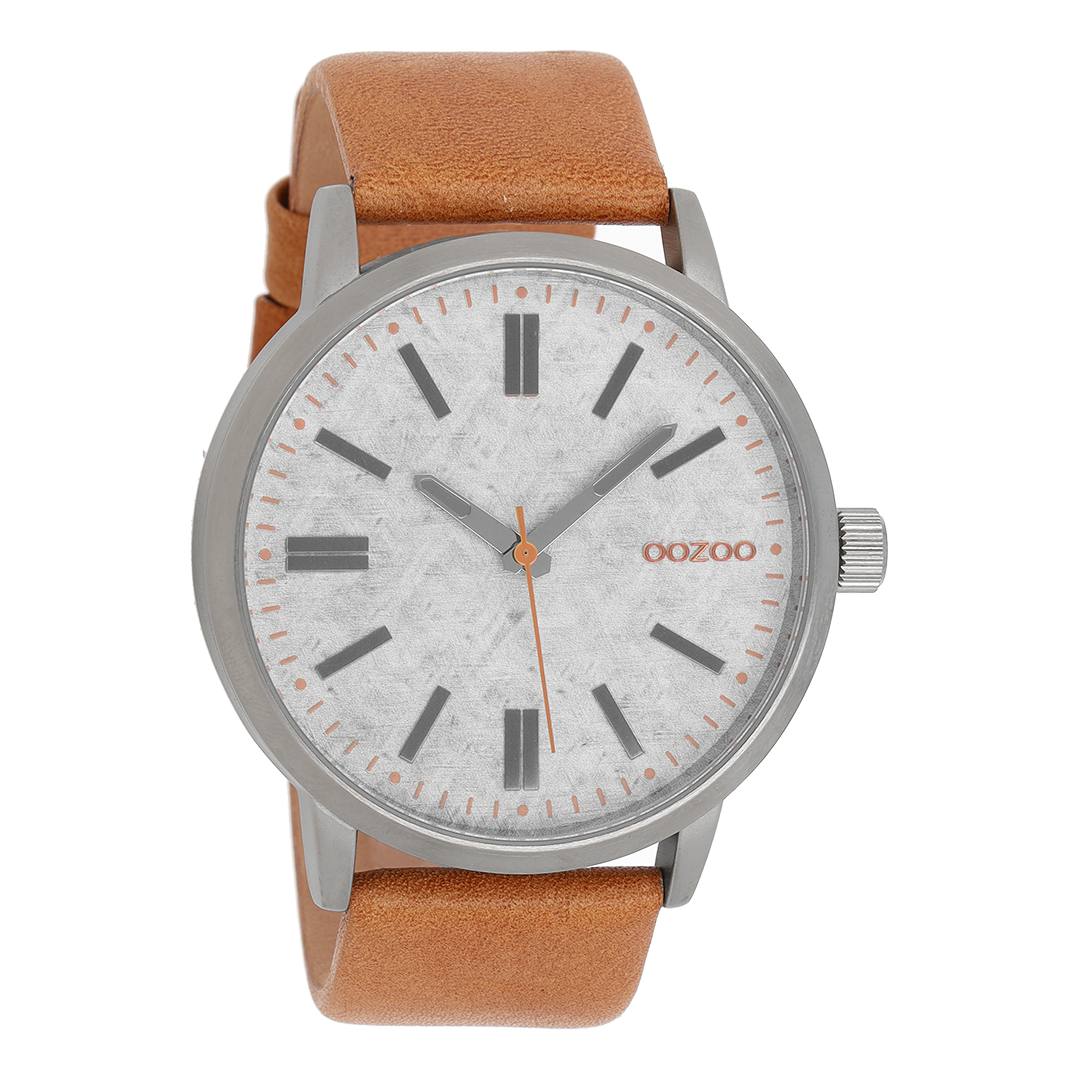 Silver coloured OOZOO watch with brown leather strap - C9405