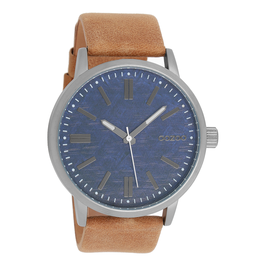 Stand out with this beautiful round gents design from the trendy OOZOO Timepieces collection. The C9406 has a camel leather strap and 48 mm titanium metal watch case. You are making quite the fashion statement with this blue dial, titanium stripes digits and white/titanium hands. This essential watch for your wardrobe has a mineral glass, stainless steel backplate and is nickel safe. This watch has a 2 Japanese movement and is covered by a 2 year warranty (see section 3 of our Refund, shipping & warranty policy).
