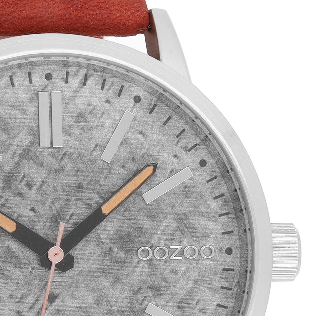 Silver coloured OOZOO watch with cognac leather strap - C9407