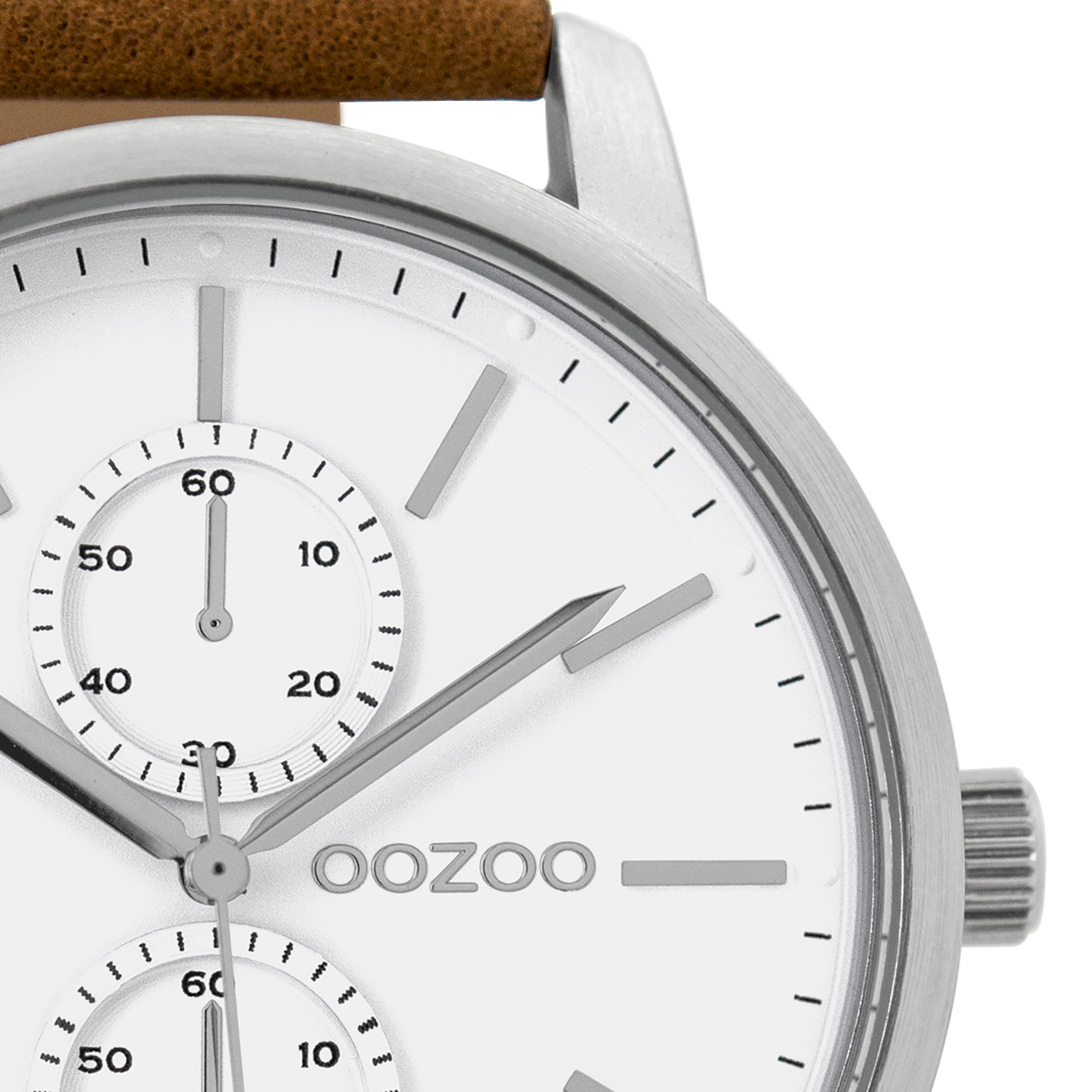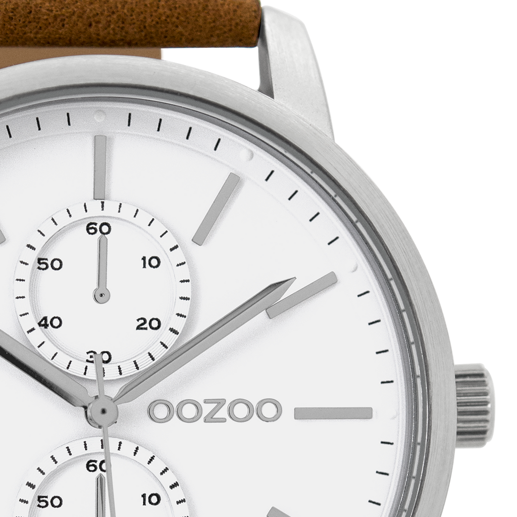 Silver coloured OOZOO watch with brown leather strap - C9451