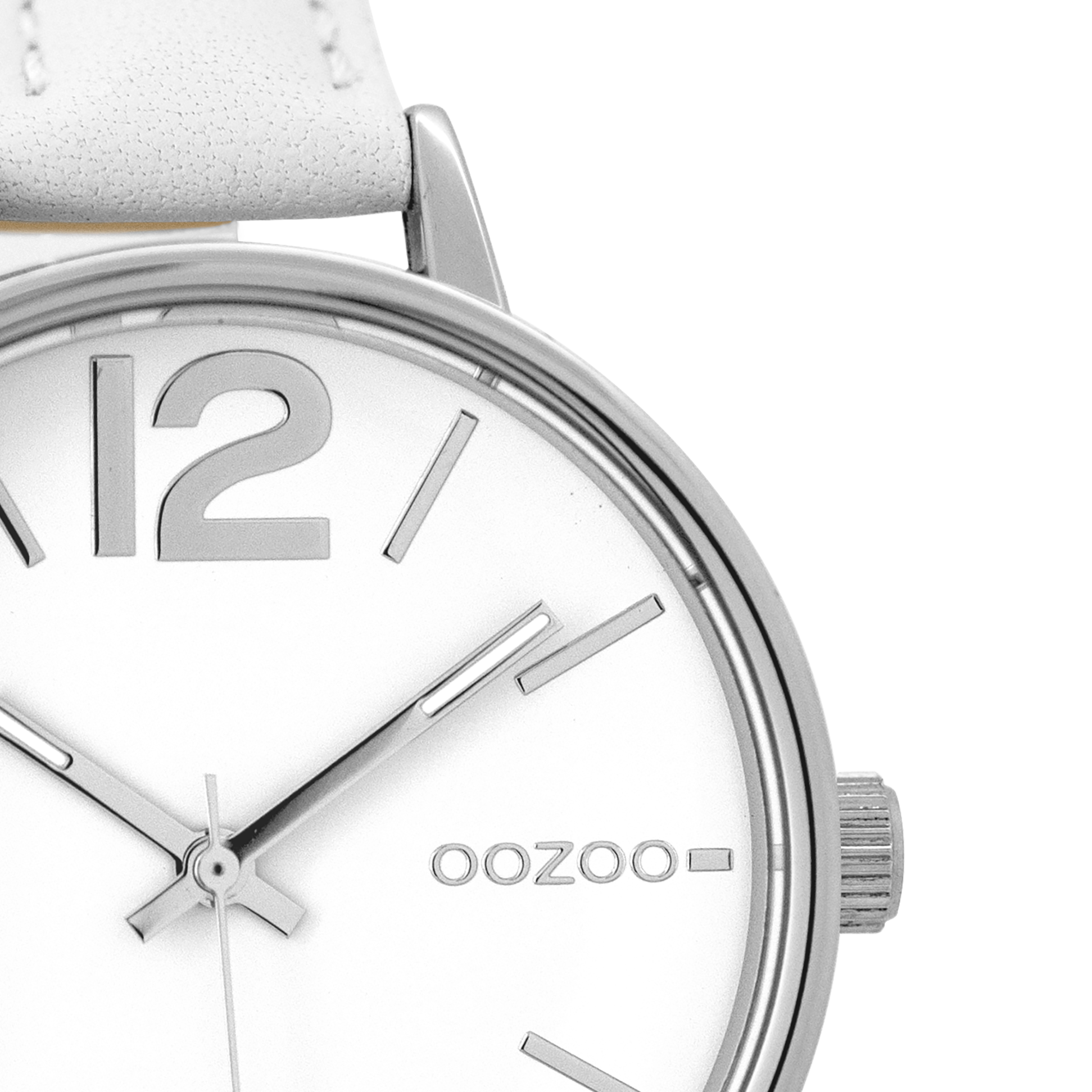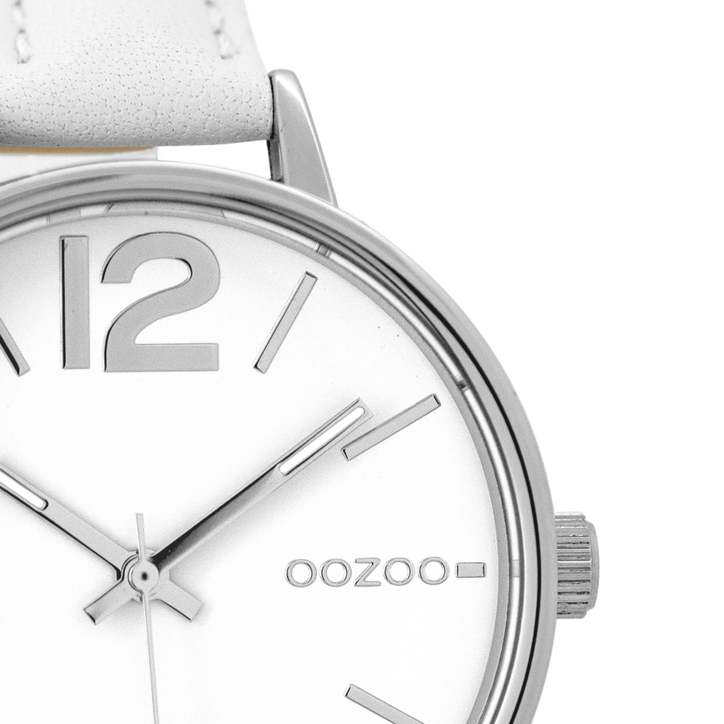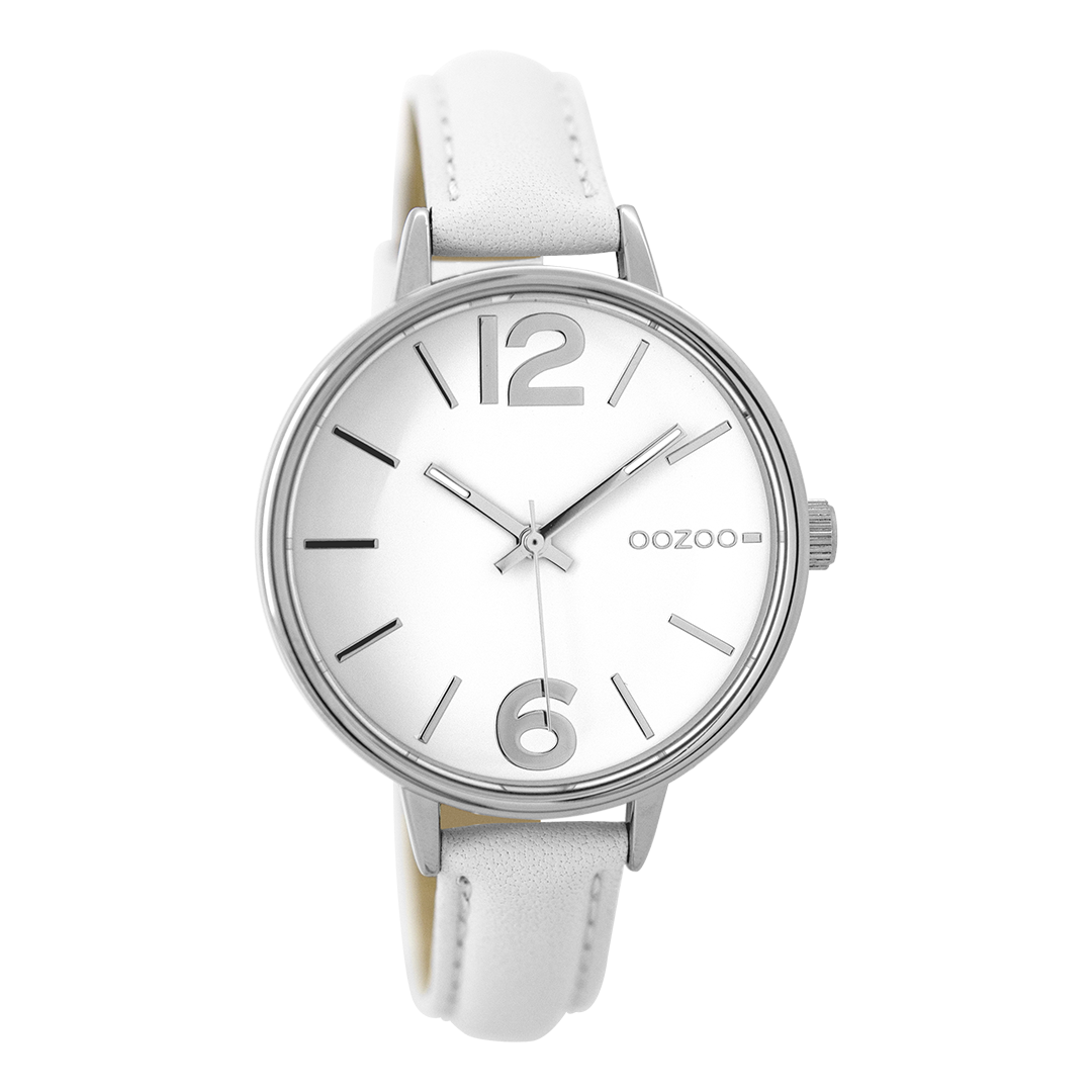 Silver coloured OOZOO watch with white leather strap - C9480