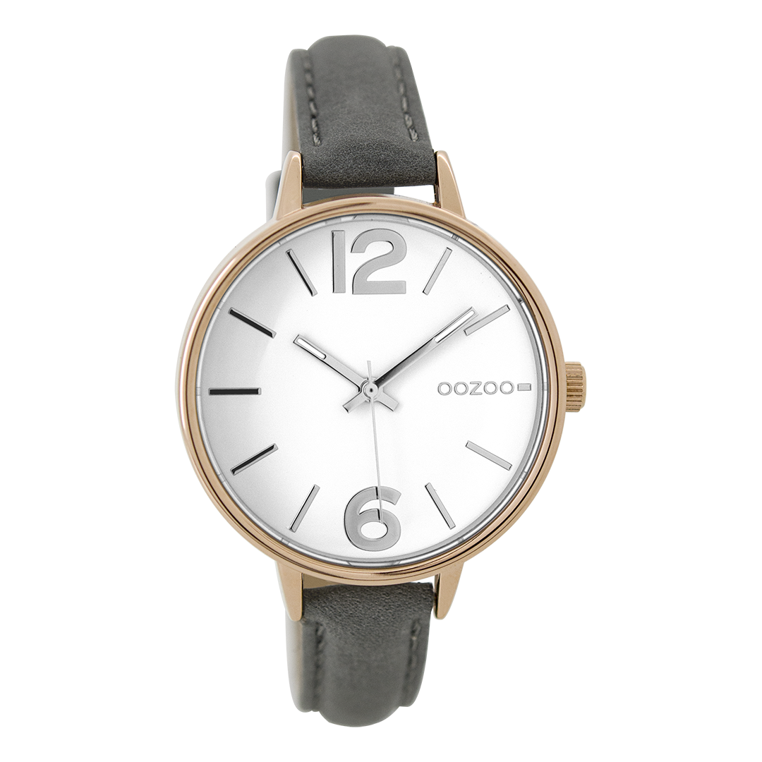 Rose gold coloured OOZOO watch with elephant grey leather strap - C9483