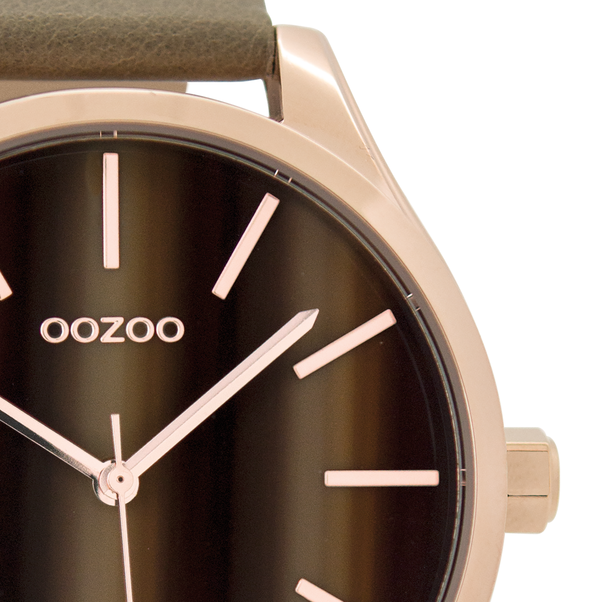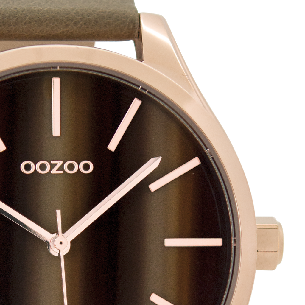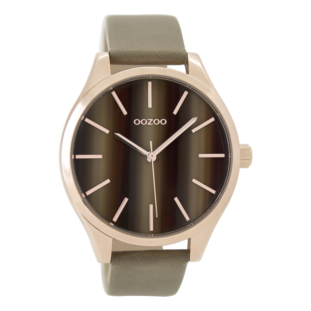 Rose gold coloured OOZOO watch with taupe leather strap - C9501