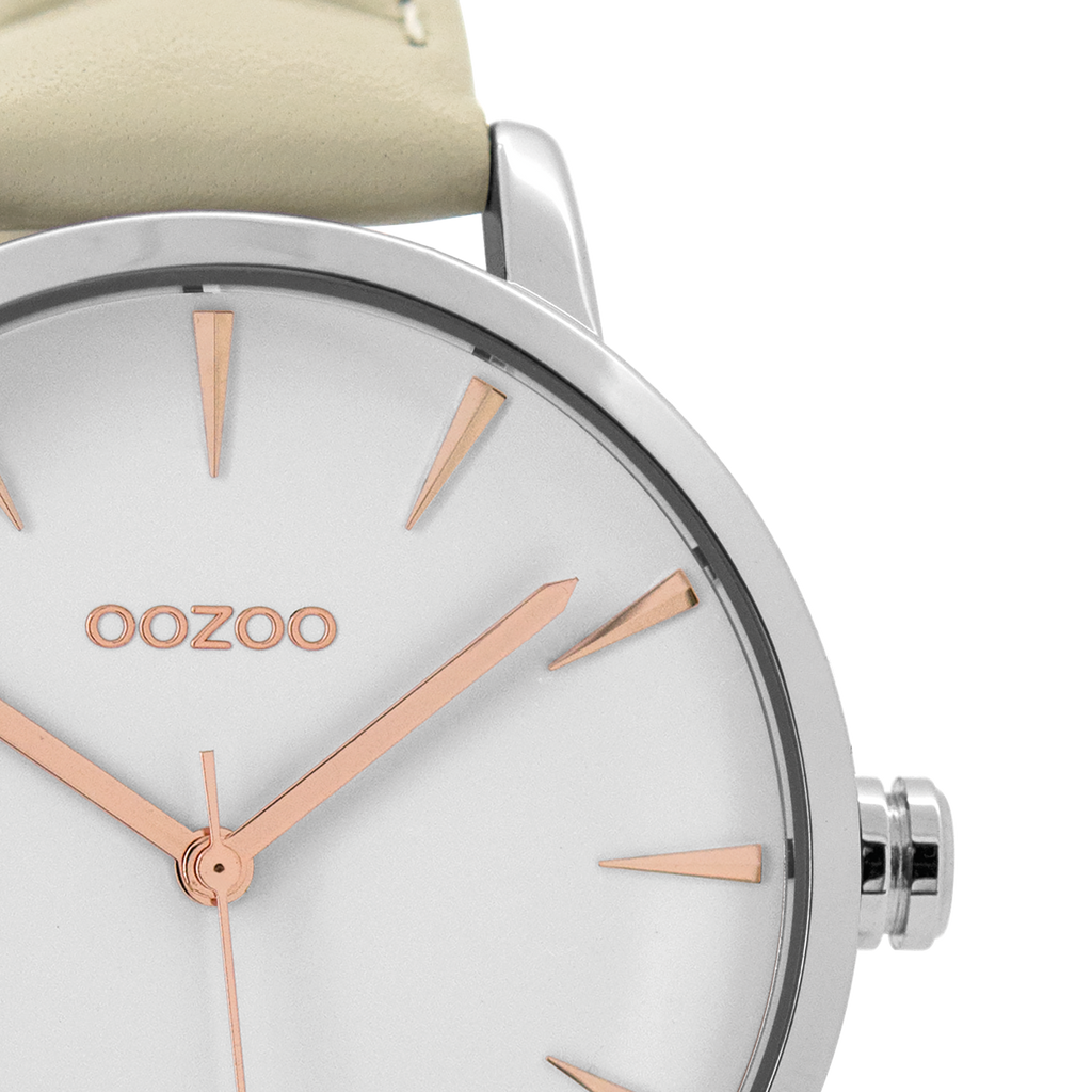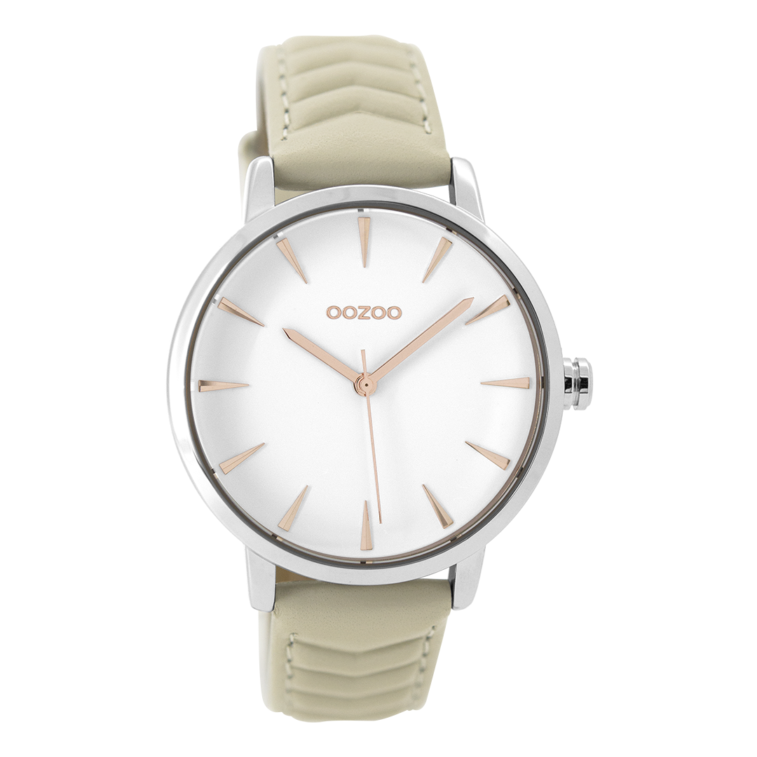 Silver coloured OOZOO watch with sand leather strap - C9505