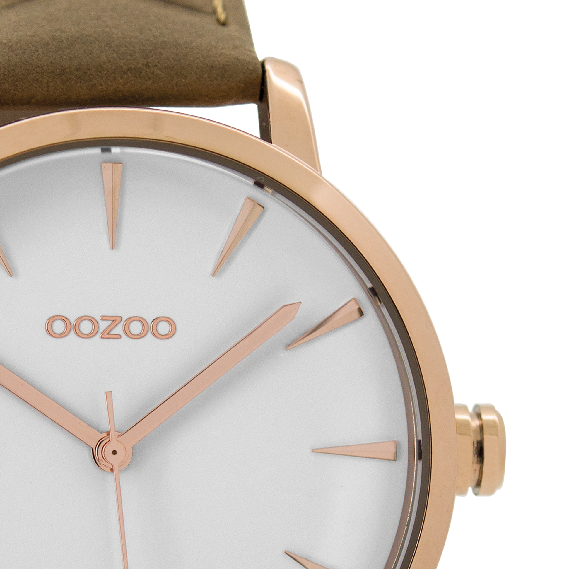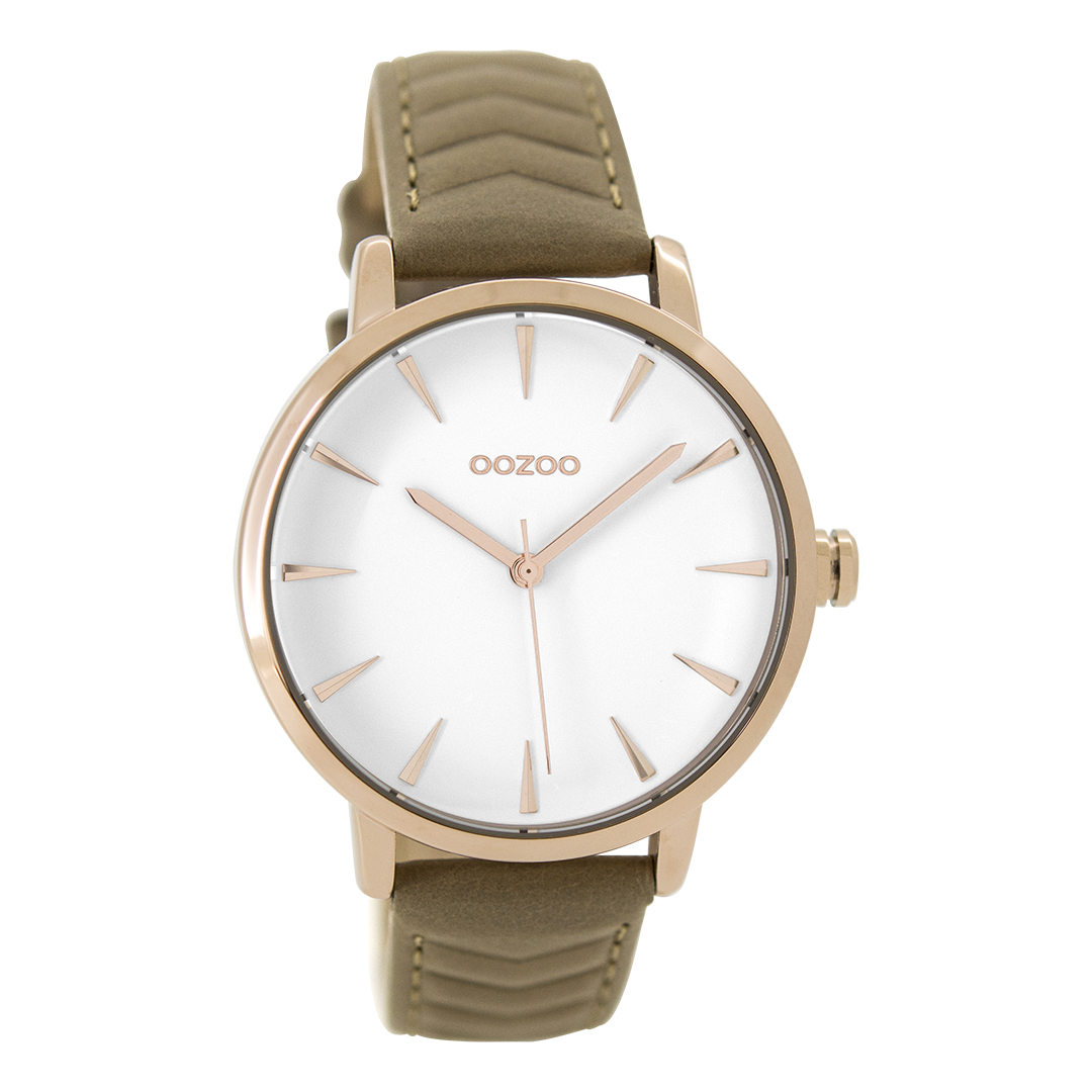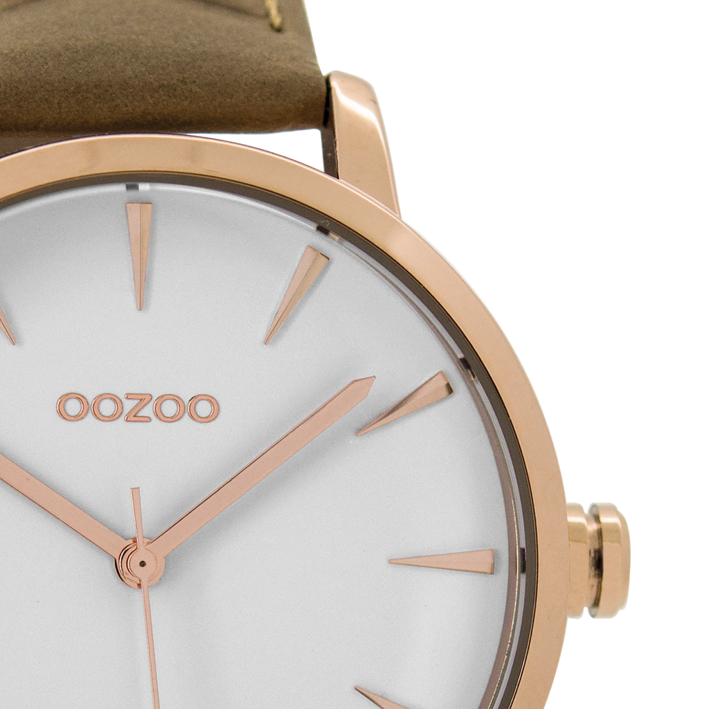 Rose gold coloured OOZOO watch with taupe leather strap - C9508