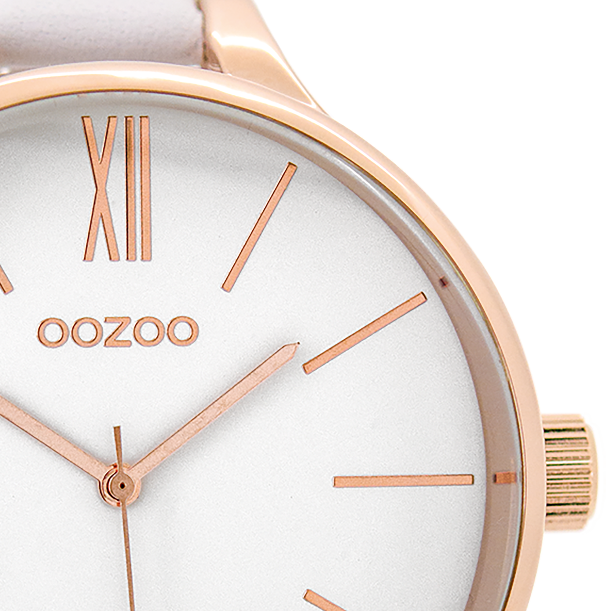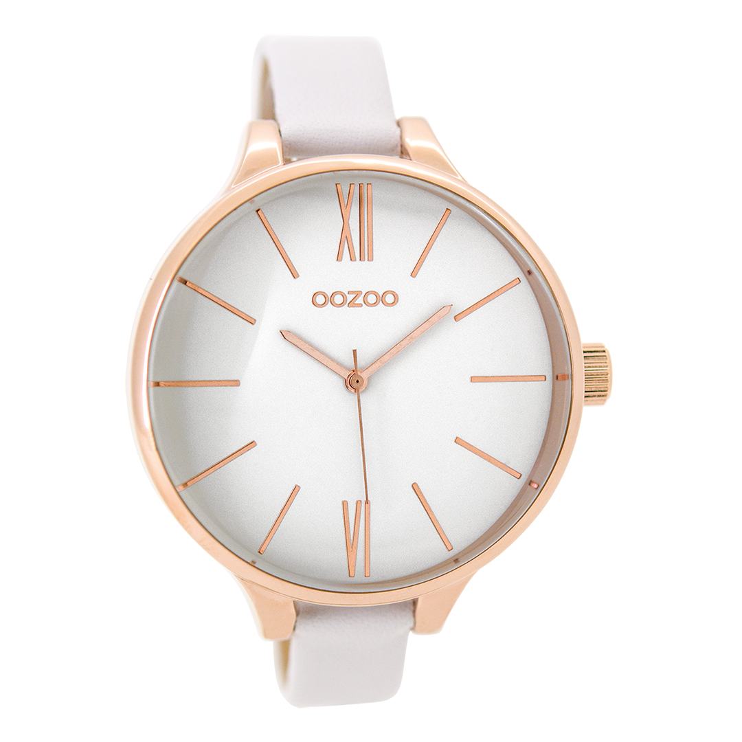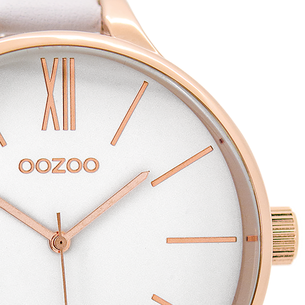 Rose gold coloured OOZOO watch with white leather strap - C9540