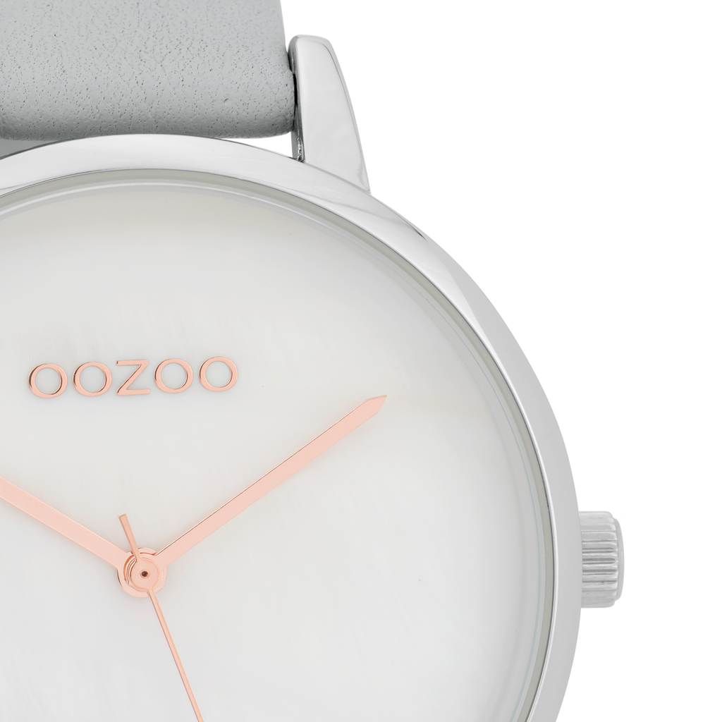 Silver coloured OOZOO watch with stone grey leather strap - C9585