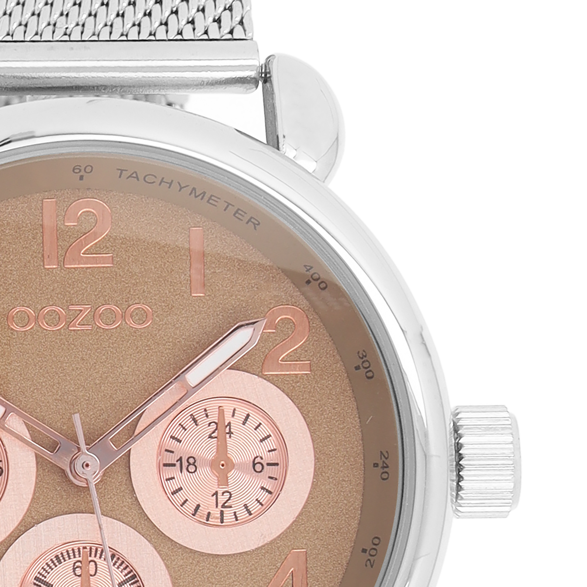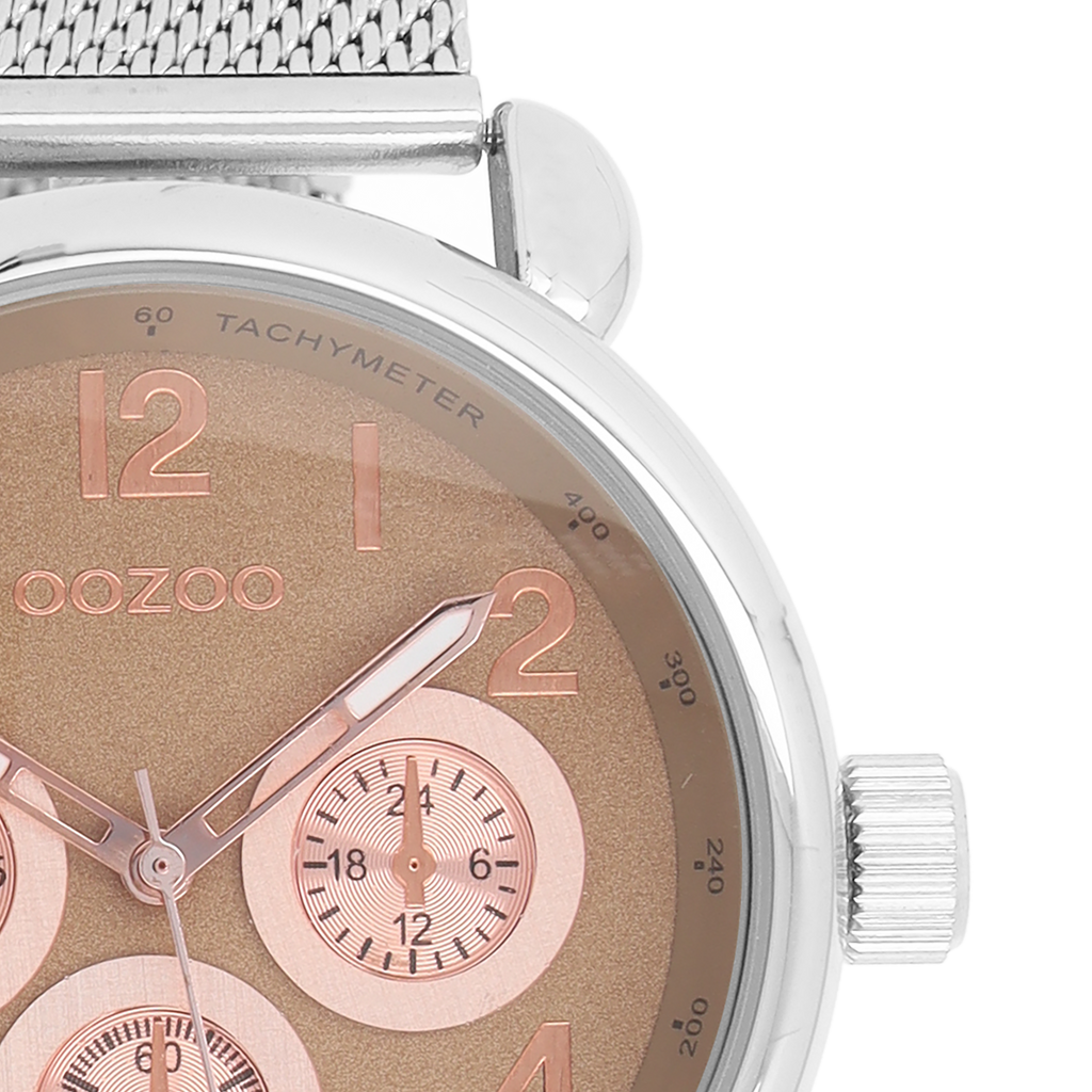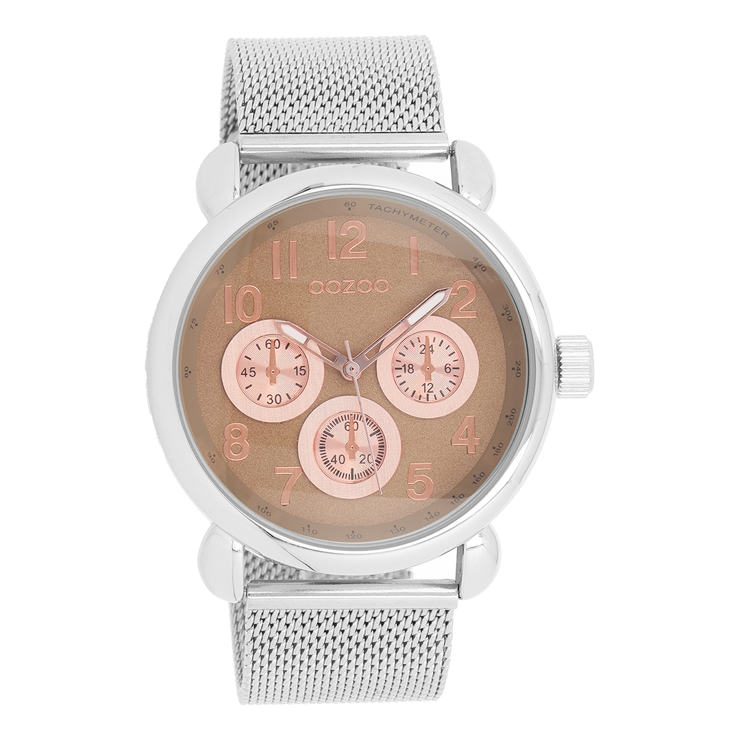 Silver coloured OOZOO watch with metal mesh bracelet - C9610
