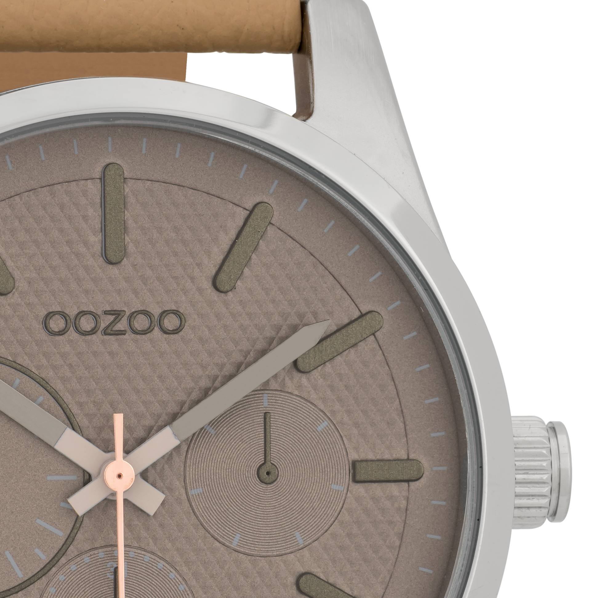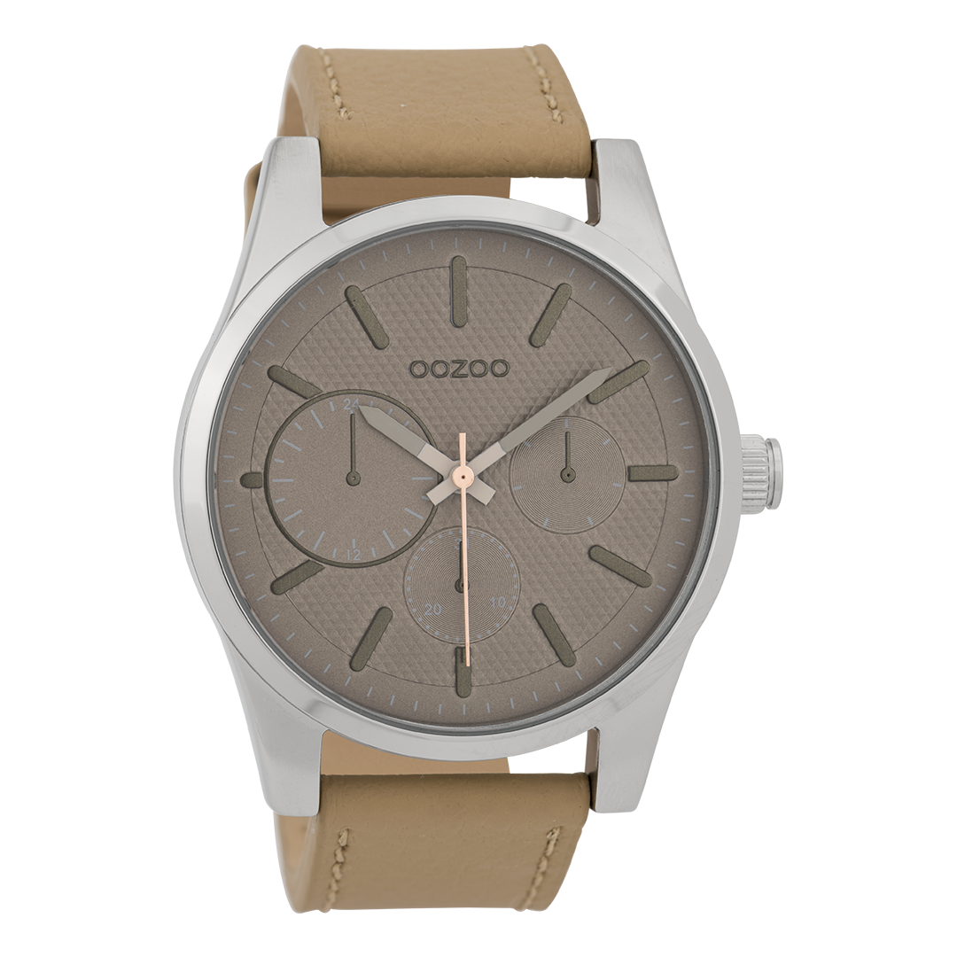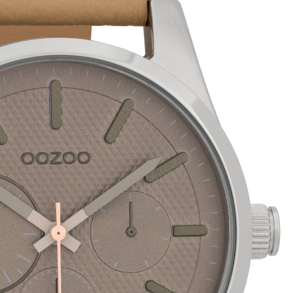 Silver coloured OOZOO watch with camel leather strap - C9615