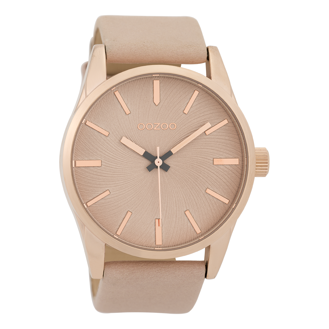 Rose gold coloured OOZOO watch with pink grey leather strap - C9626