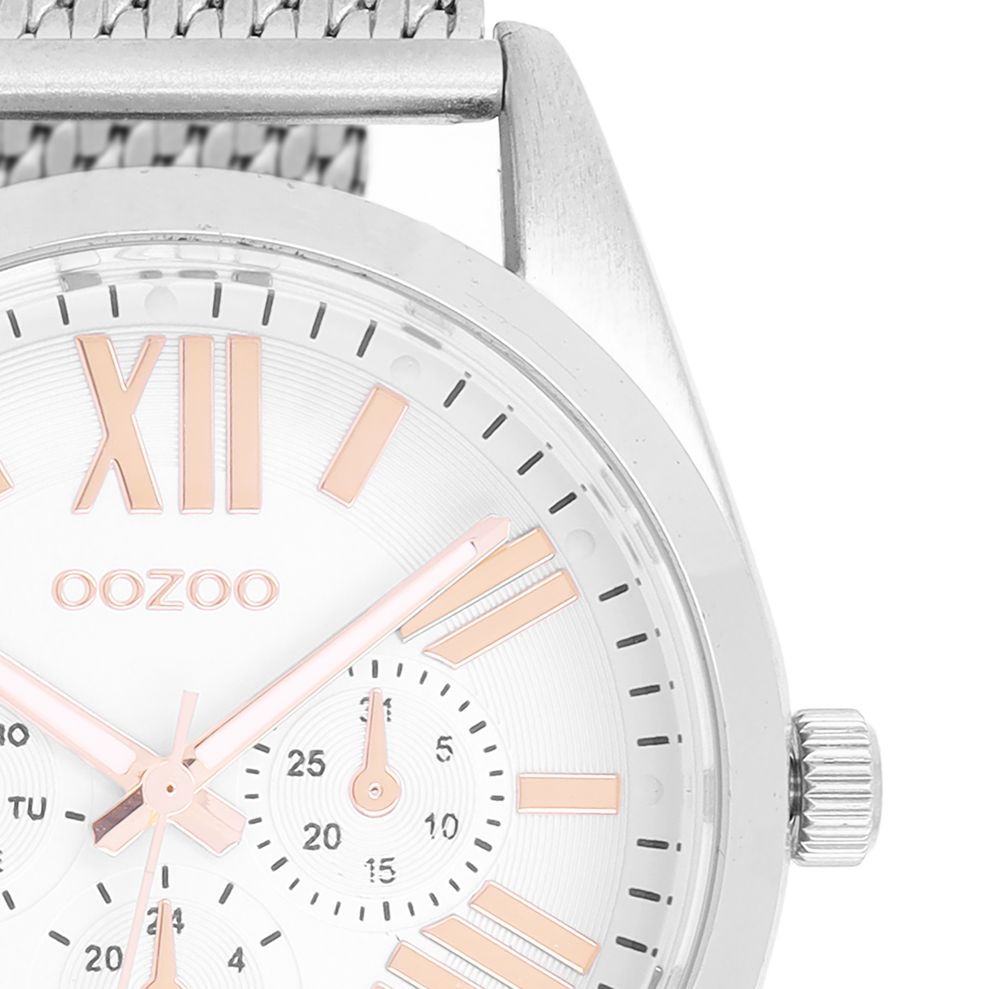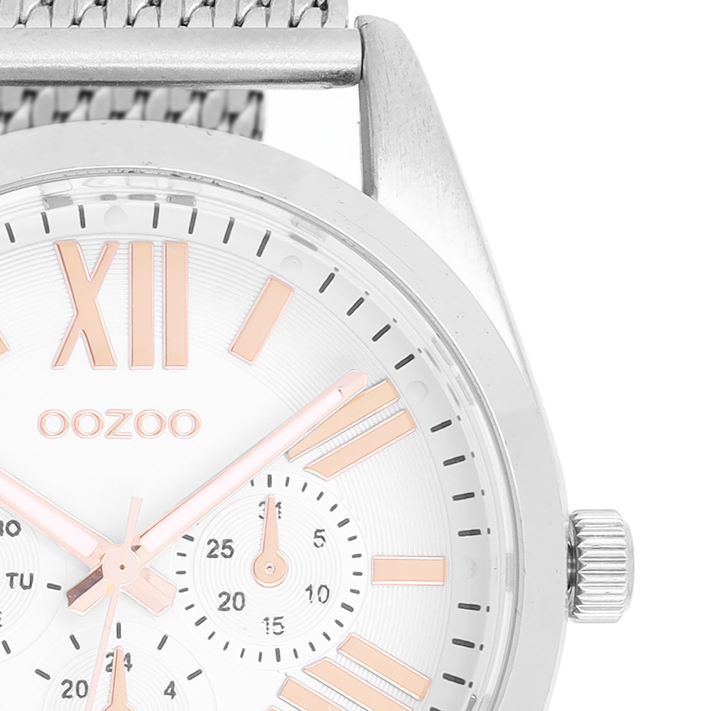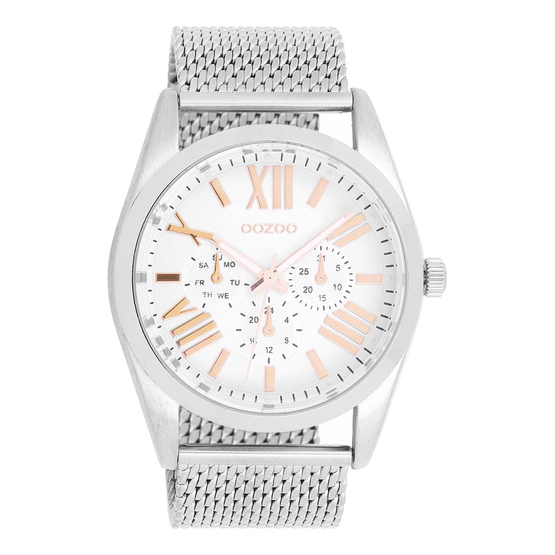 Silver coloured OOZOO watch with metal mesh bracelet - C9640