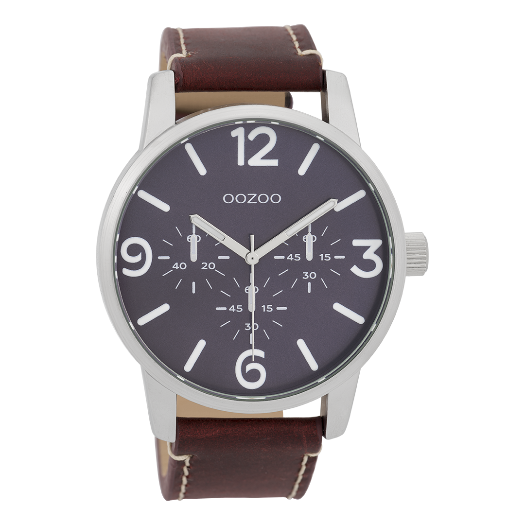Stand out with this beautiful round gents design from the trendy OOZOO Timepieces collection. The C9651 has a red brown leather strap and 45 mm silver coloured metal watch case. You are making quite the fashion statement with this blue chrono dial, silver coloured stripes and numbers digits and matching hands. This essential watch for your wardrobe has a mineral glass, stainless steel backplate and is nickel safe. This watch has a 2 Japanese movement and is covered by a 2 year warranty (see section 3 of our Refund, shipping & warranty policy).