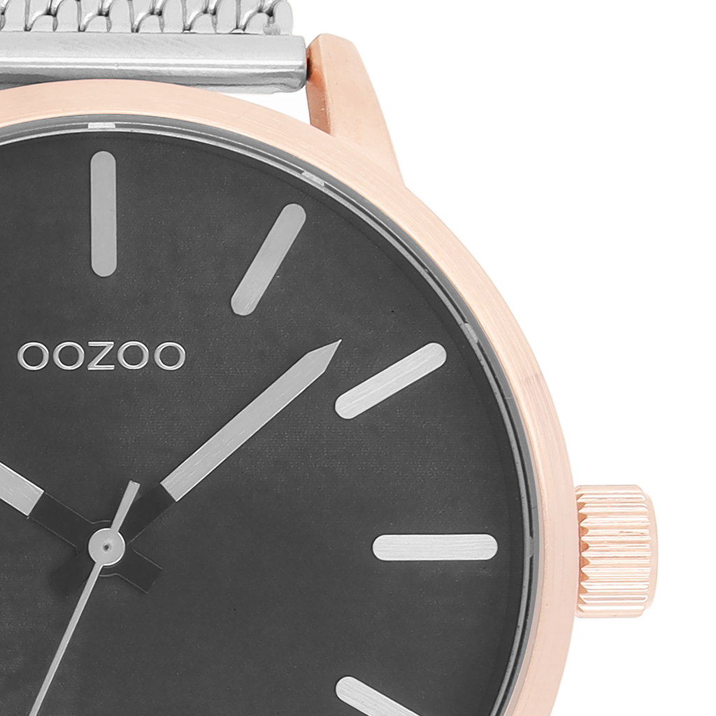 Rose gold coloured OOZOO watch with silver coloured metal mesh bracelet - C9657