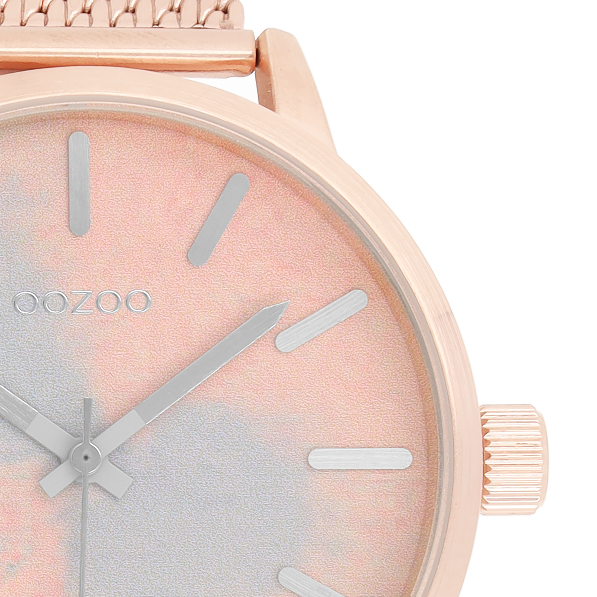 Rose gold coloured OOZOO watch with metal mesh bracelet - C9658