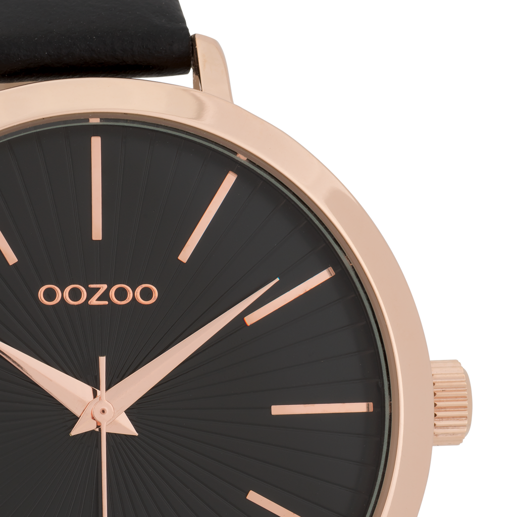 Rose gold coloured OOZOO watch with black leather strap - C9674