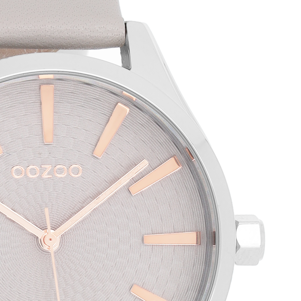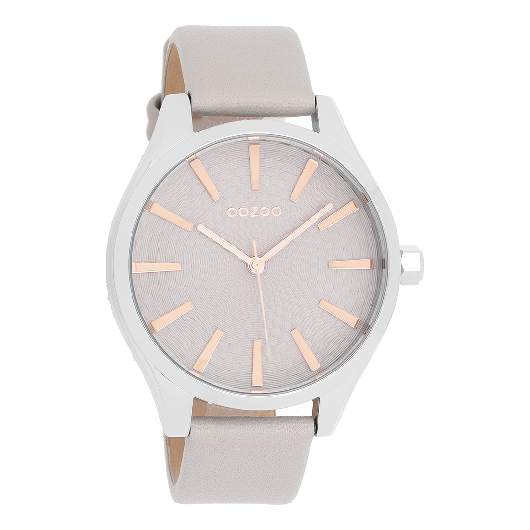 Silver coloured OOZOO watch with light grey leather strap - C9685